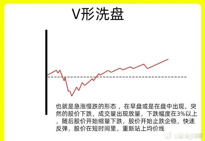 就是我们说深V反转,在分时里,盘中股价突然开始下跌,在几分钟里出现大幅下跌,跌幅会在3%以上。随后股价开始止跌反弹向上,成交量出现放大,突破了前期的高点,把深坑回填。就形成了一个V字形的走势。主力利用这种快跌快涨的方式,来清洗不坚定筹码。这是洗盘手法一般会出现上涨趋势的初期