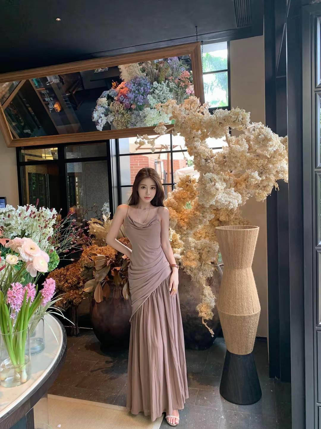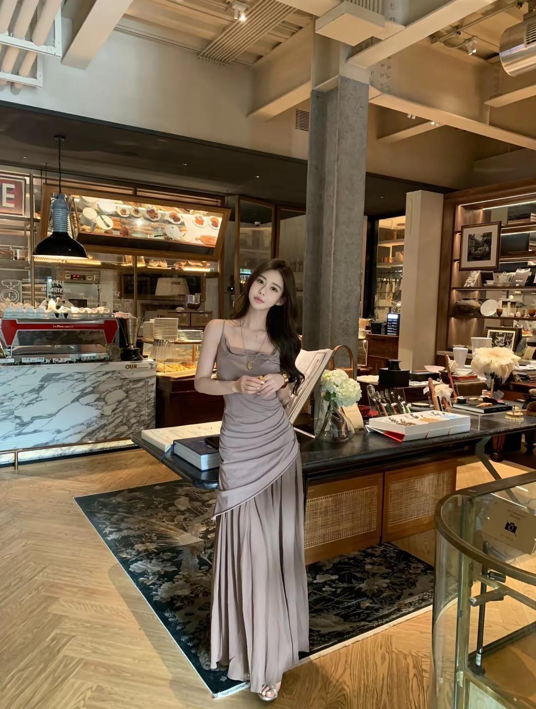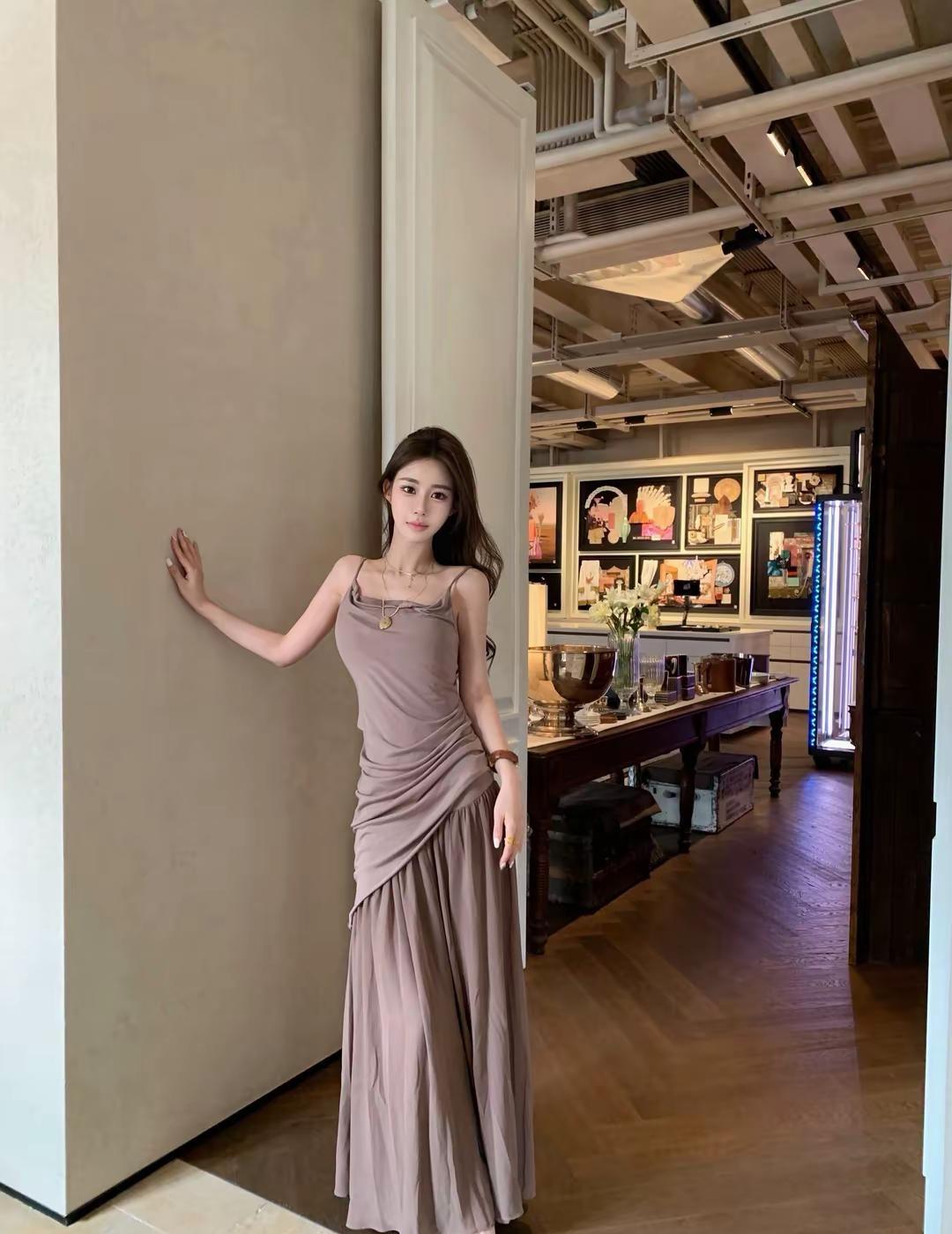 柔美漂亮的衬衫吊带裙