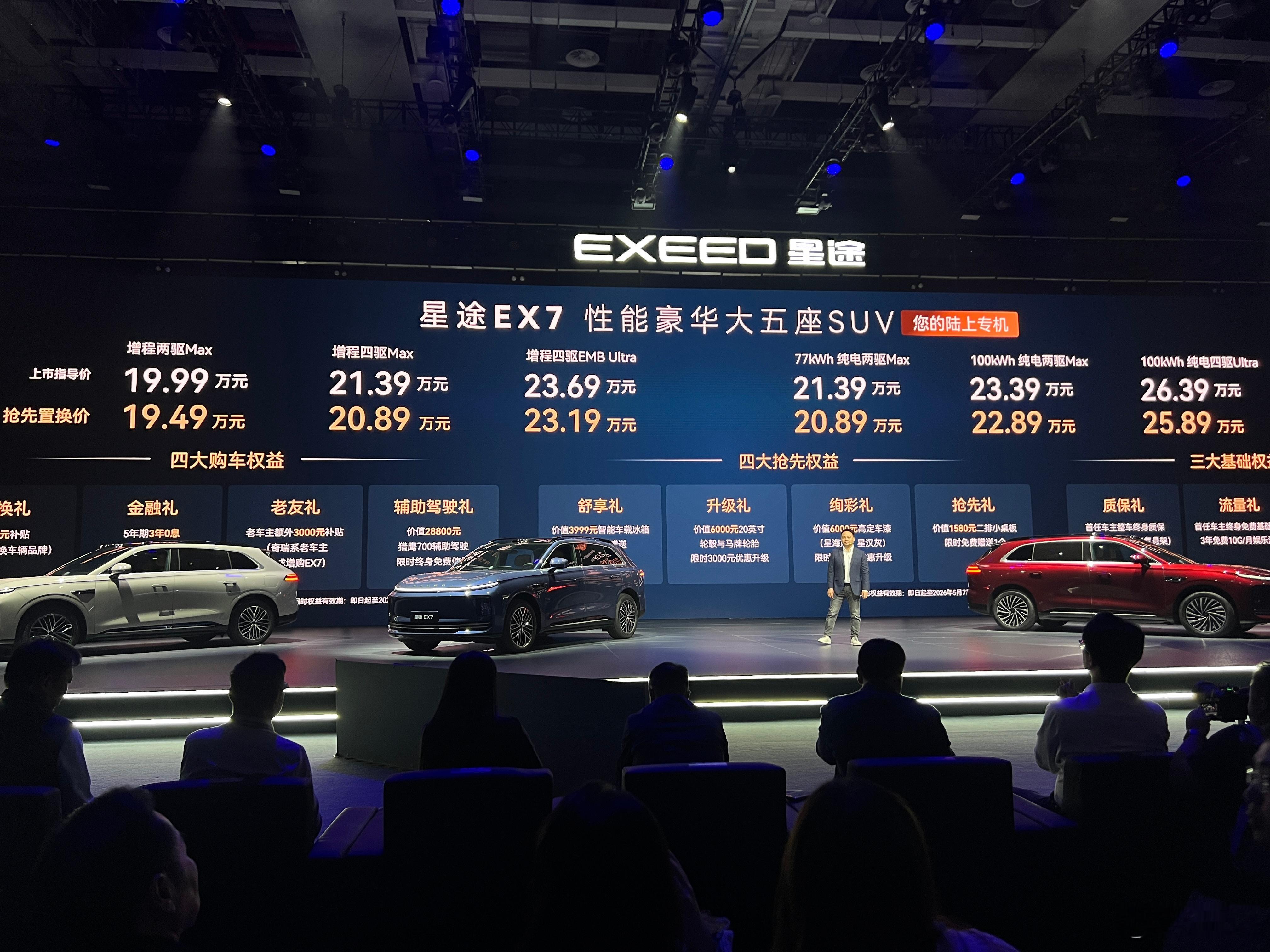 星途EX7作为星途3.0时代的首款车型除了价格颇有惊喜外,产品本身素质着实够强一台车长接近5米、轴距3米的SUV已经可以媲美许多大六座SUV但星途EX7却是一台大五座SUV车内空间真的巨大还有那30英寸的6K宽屏视觉很震撼,还用上了8295P的芯片冰箱沙发大彩电一样不缺还有首个搭载EMB线控制动反应很更快而且养护成本更动力有225km的1.5T增程版以及600km/726km两种续航的纯电都能提供350kW输出功力以上很显然就是瞄准理想L7和问界M7大家觉得19.49万起步这价格够吸引不?性能豪华大五座SUV星途EX7正式上市
