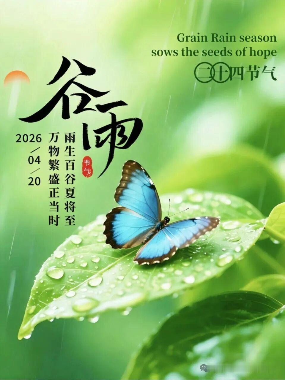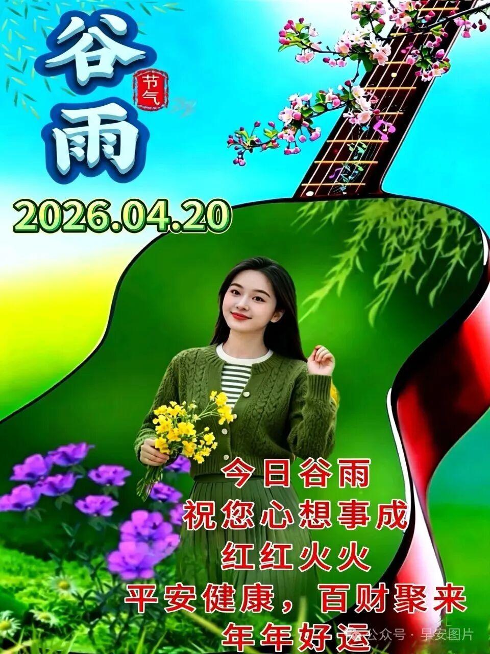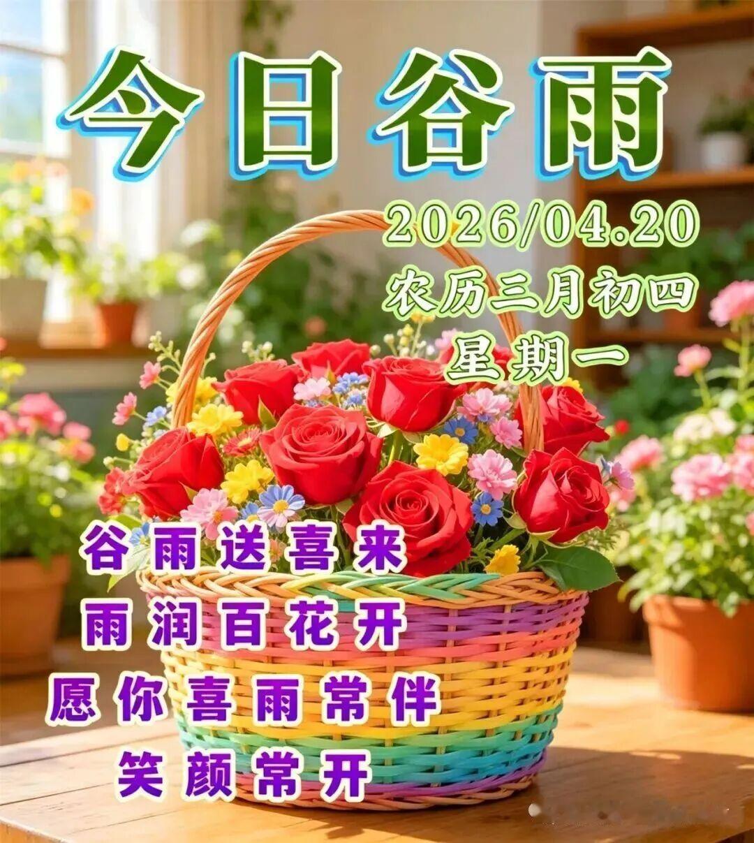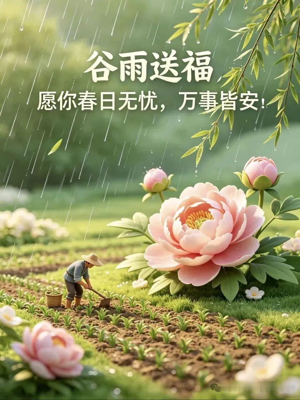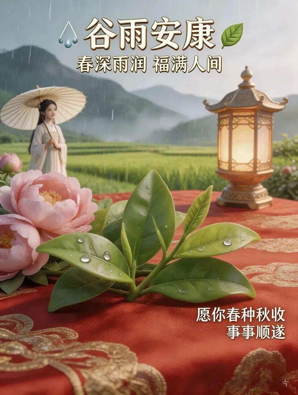 今日谷雨,春季最后一个节气,细雨润泽大地,万物蓄力生长。雨生百谷,也润人心。愿您在这谷雨时节,身心滋润,福气丰盈,新的一周顺顺当当,早安吉祥。🌼🥰