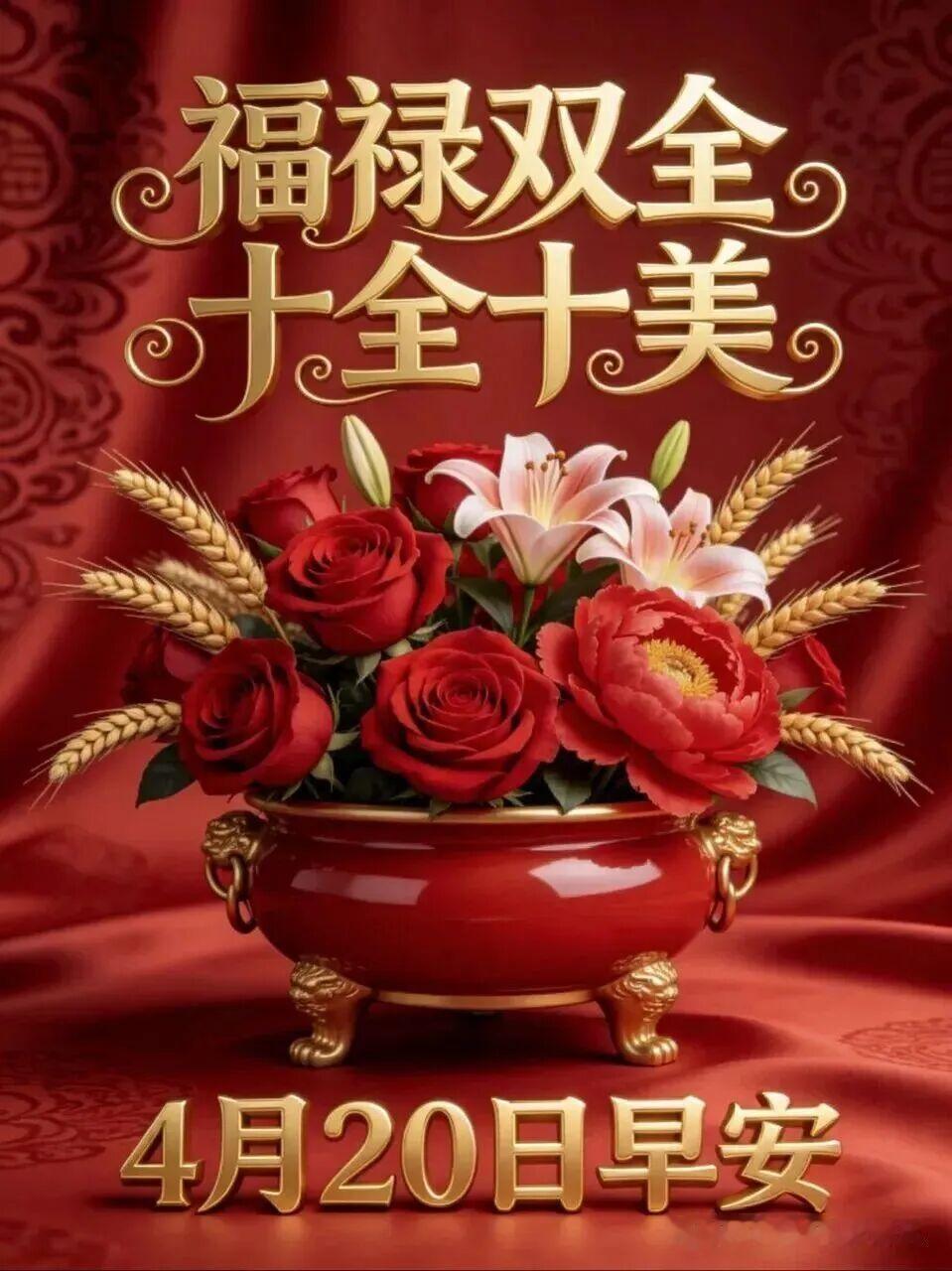 谷雨时节,春雨潇潇润万物,繁花似锦铺满路,芳草萋萋不知数,微风轻摇千万树,光阴荏苒留不住,珍惜当下勤迈步,愿你每步都算数,前程似锦有神助,吉祥如意长停驻,福寿安康乐!🌹☕