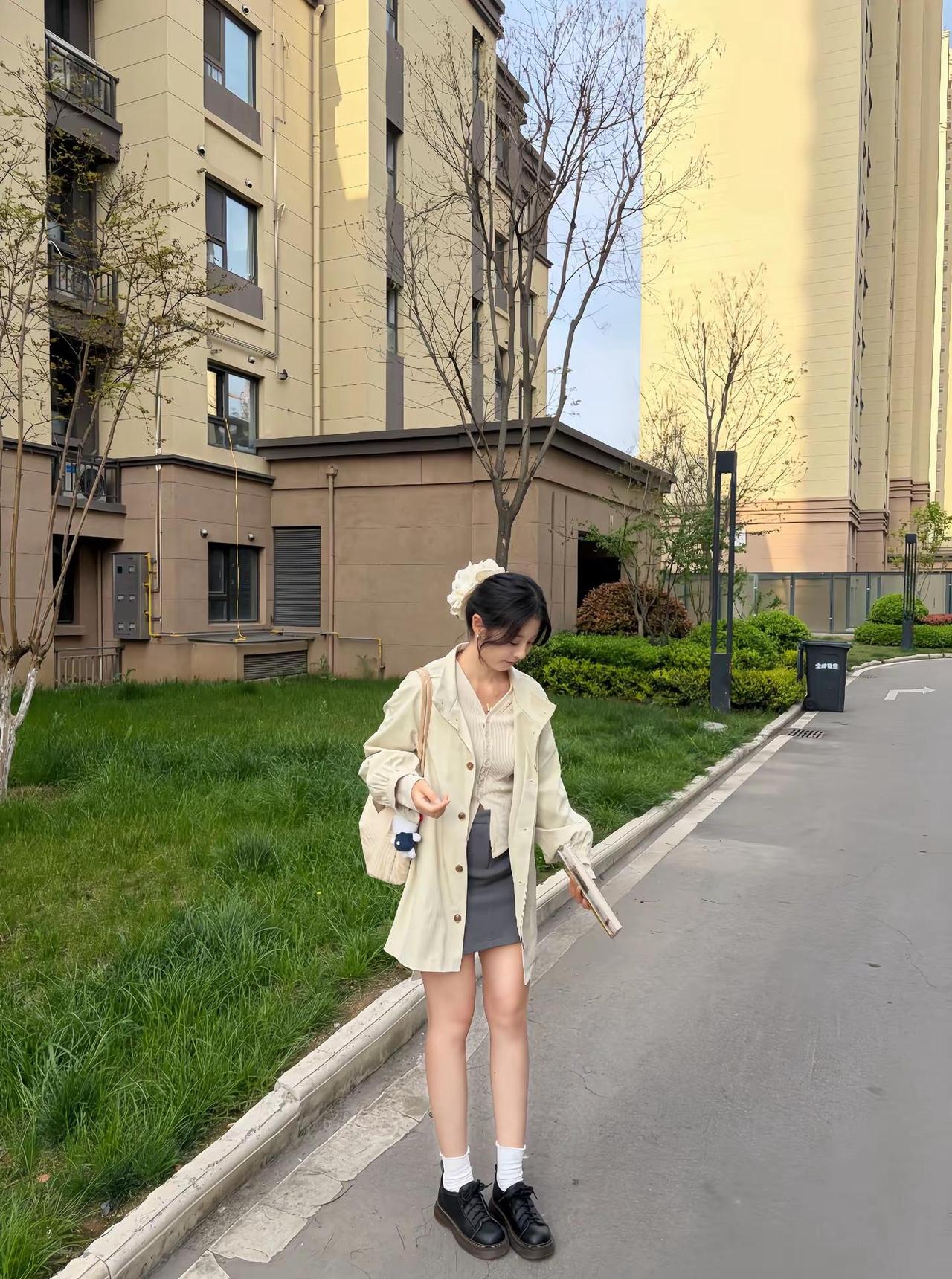 我可以懦弱却不该脆弱中长款风衣外套 花墙拍照姿势 黄色花墙
