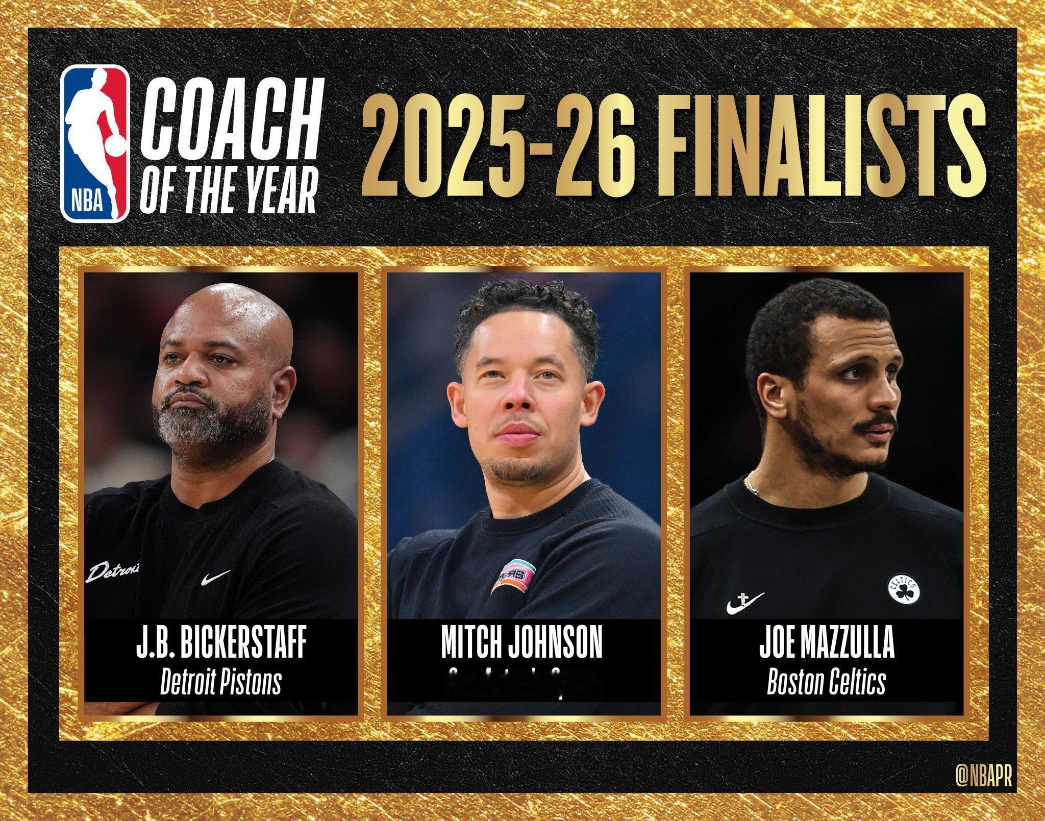 最佳教练:比克斯塔夫(活塞)、马祖拉(凯尔特人)、米奇·约翰逊(马刺)