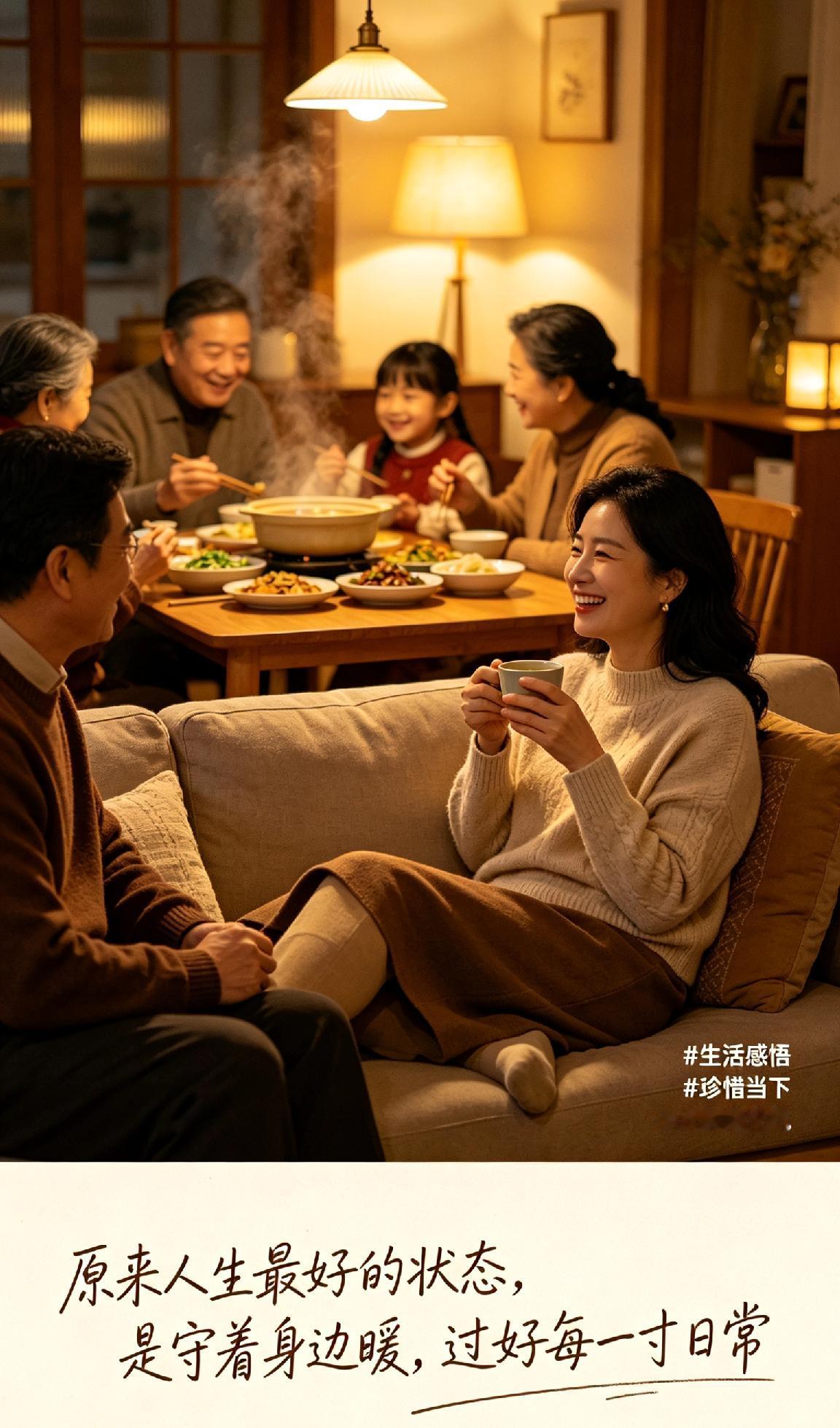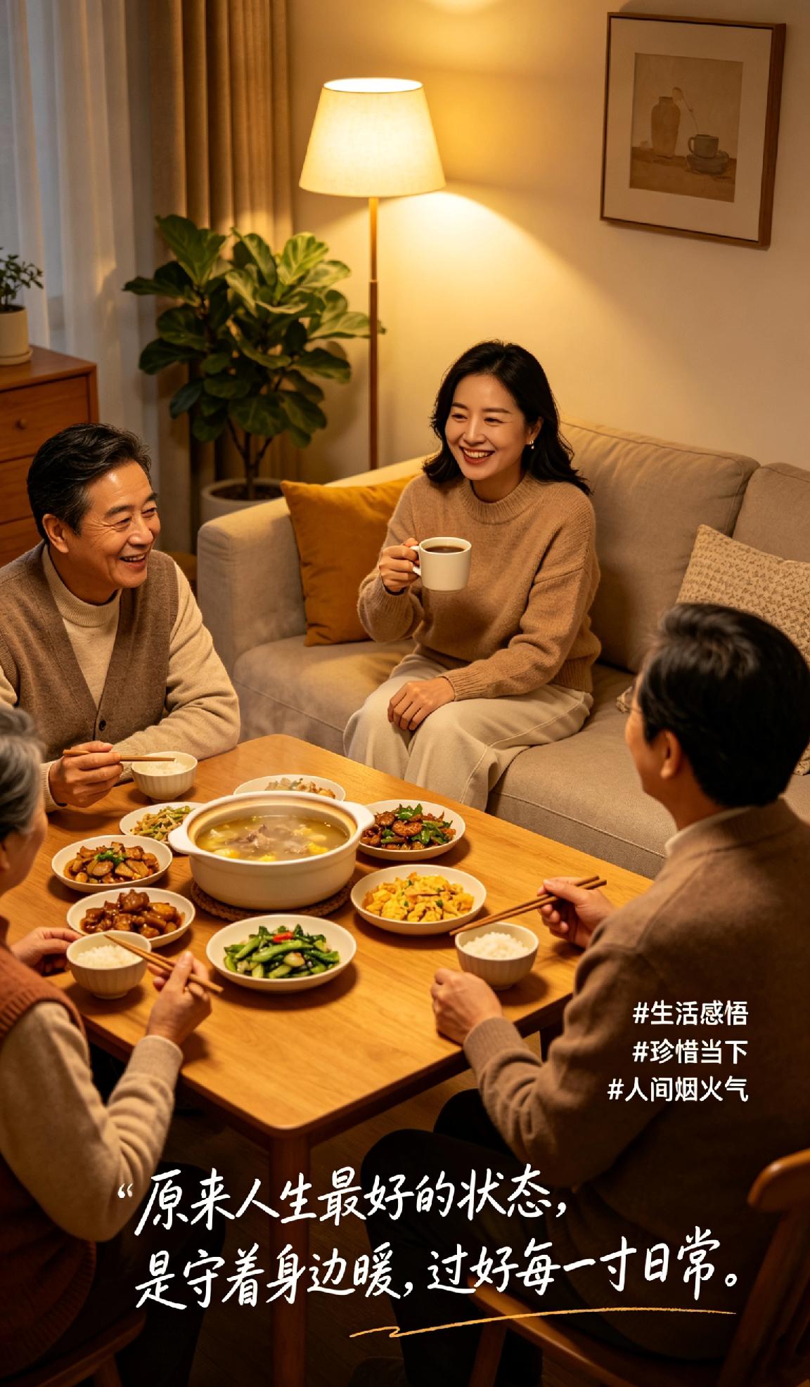 原来人生最好的状态,是守着身边暖,过好每一寸日常。家人闲坐灯火可亲,挚友相伴笑语盈盈,这些平凡瞬间,早已是生活顶配。不纠结得失,接纳每一步成长,稳步前行就好。感谢友友同行,让感悟有了共鸣的力量。 生活感悟 珍惜当下