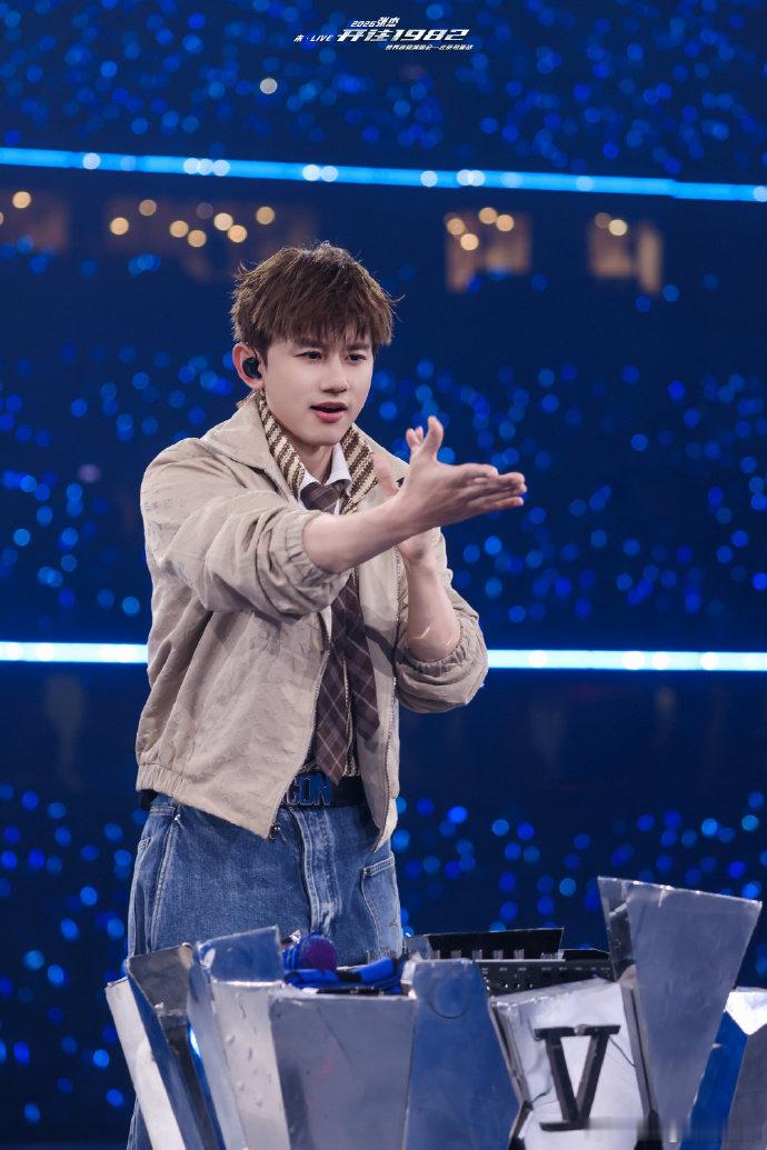 张杰演唱会群像蓝色荧光汇成浩瀚星海,张杰站在光里歌唱,每一句都饱含深情,每一段都