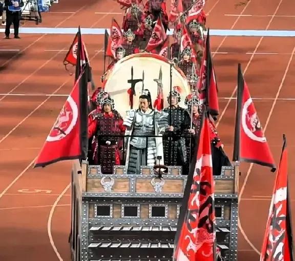何润东认怂了,他乘坐战车出场,演员何润东复刻“西楚霸王”项羽的经典造型,亮相宿迁奥体中心助威“苏超”。