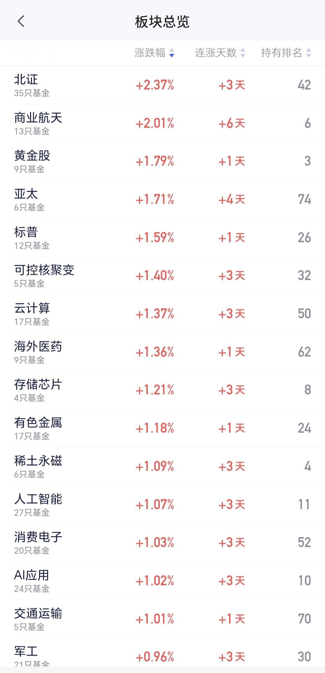 整个市场上涨幅度最大的三个板块是:北证板块,商业航天板块,黄金板块,下跌幅度最大的三个板块是:锂矿板块,白酒板块,港股红利板块。