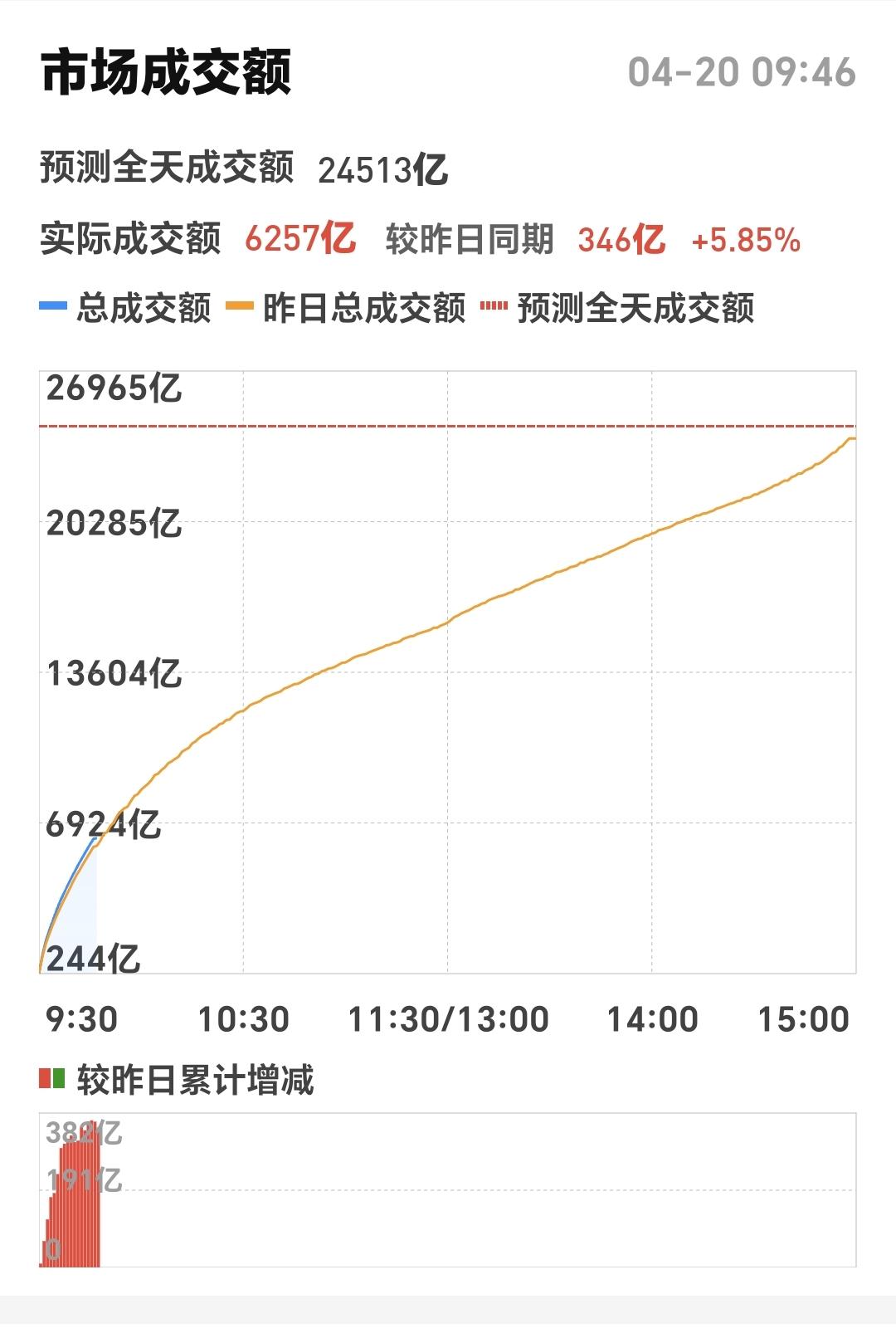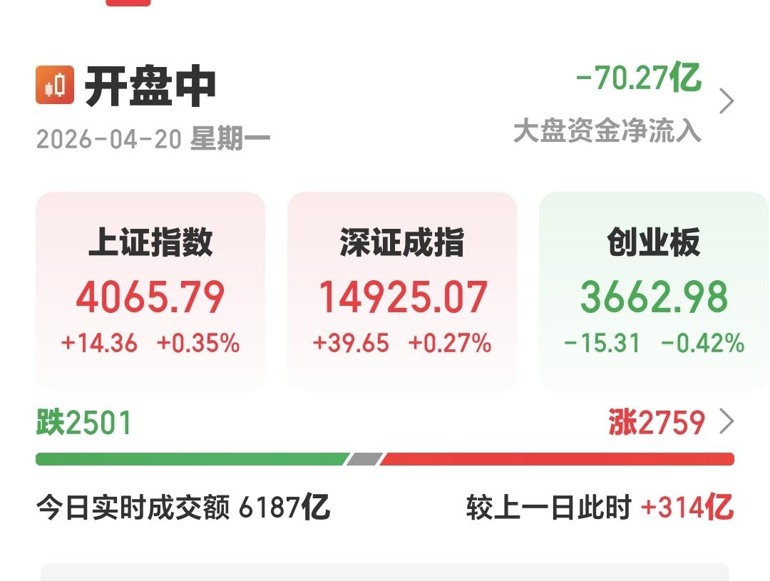 整个股票市场,上涨2759家,下跌2501家,两市累计成交6187亿,相比于上一个交易日同期放量了314亿,放量幅度为5.85%,全天两市累计成交预估24513亿,主力资金净流出70亿。