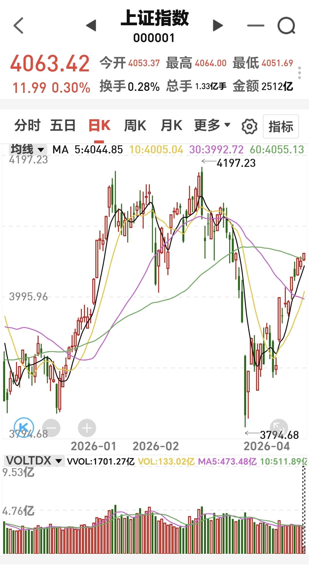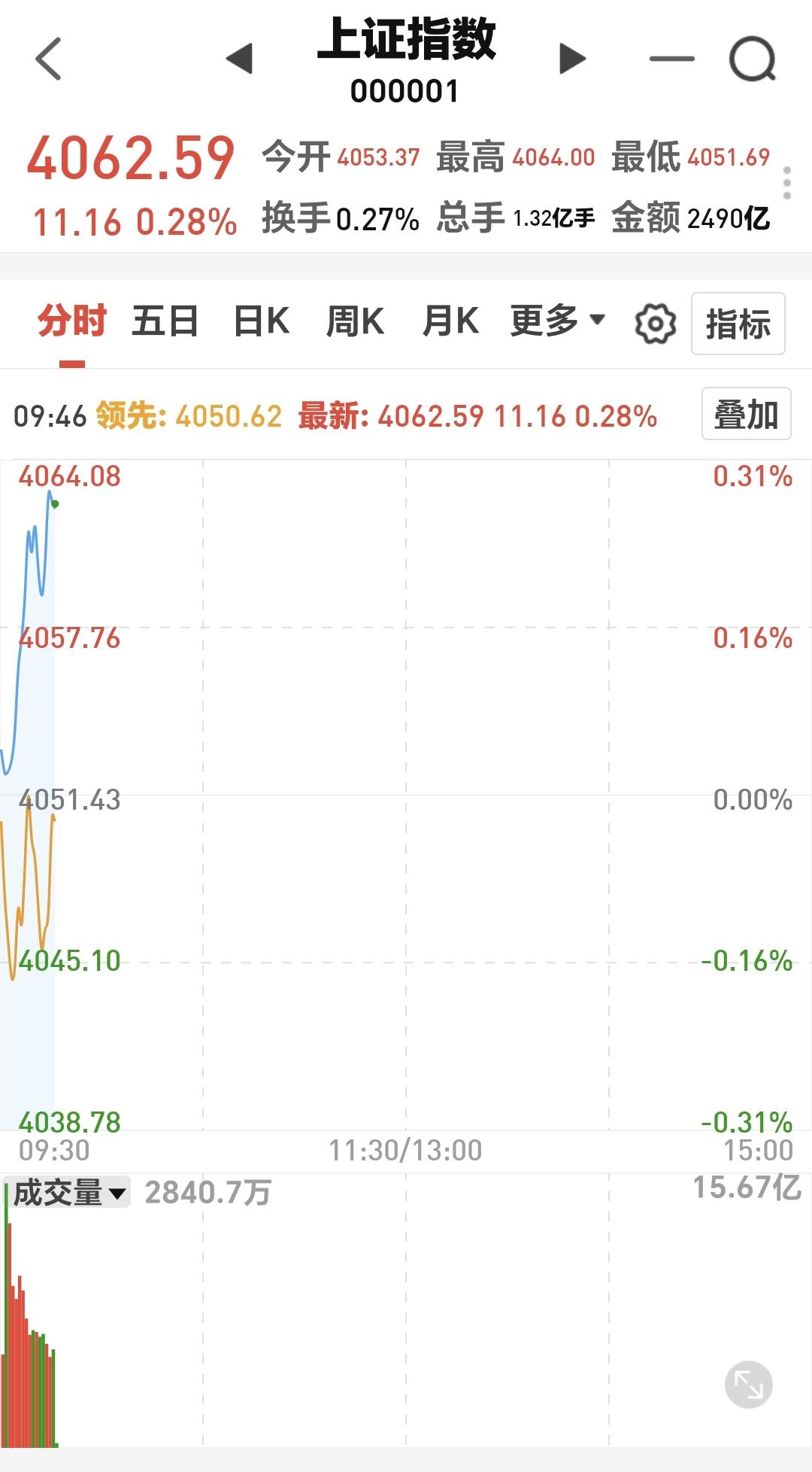 市场继续震荡向上,压力位置在4093点附近,支撑位置是五日线,盘中只要是在五天线之上的震荡都没有问题,如果跌破五天线才需要谨慎。
