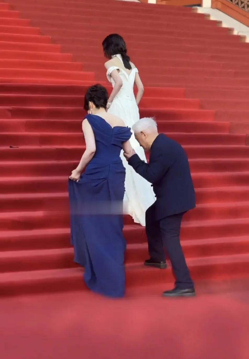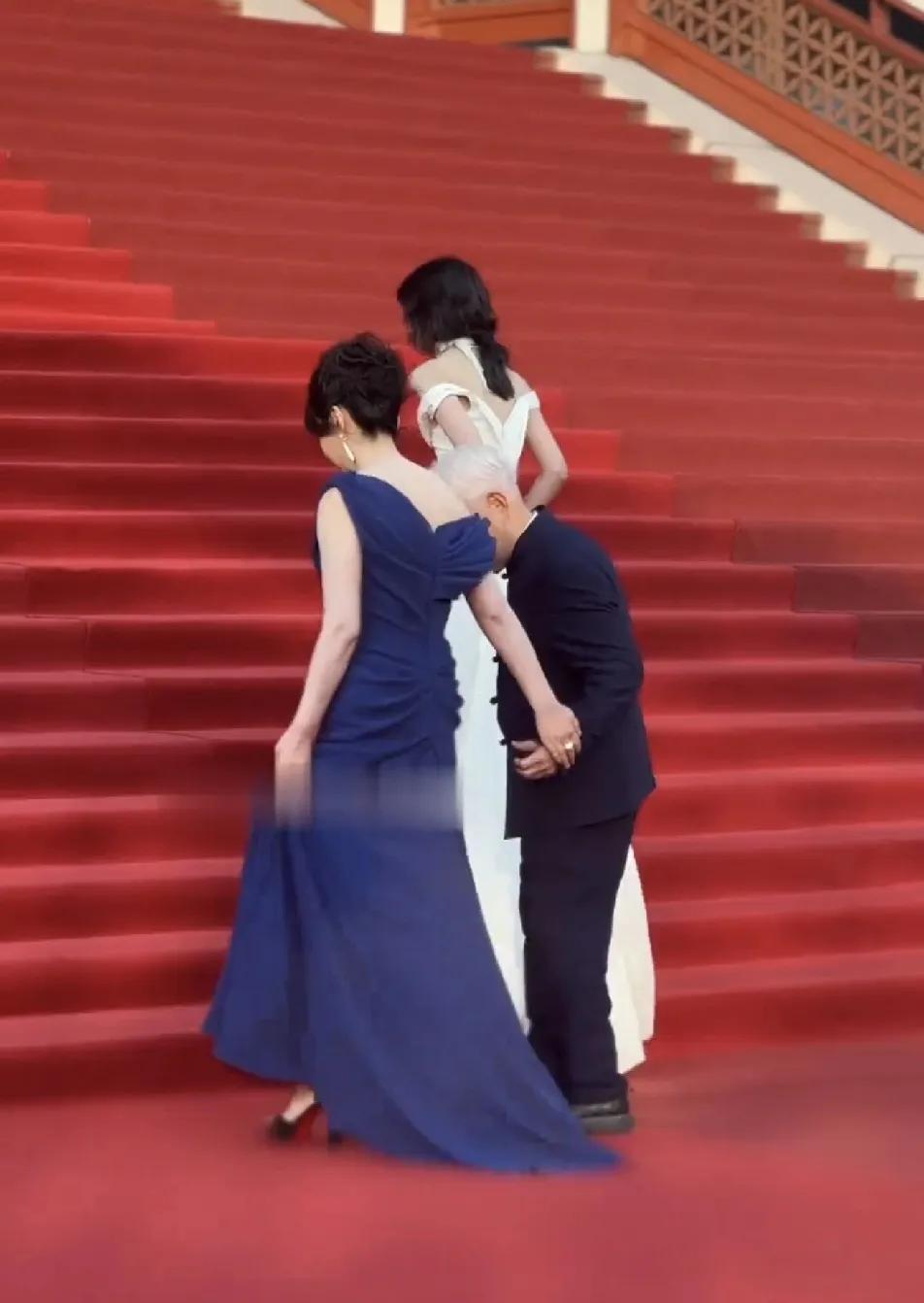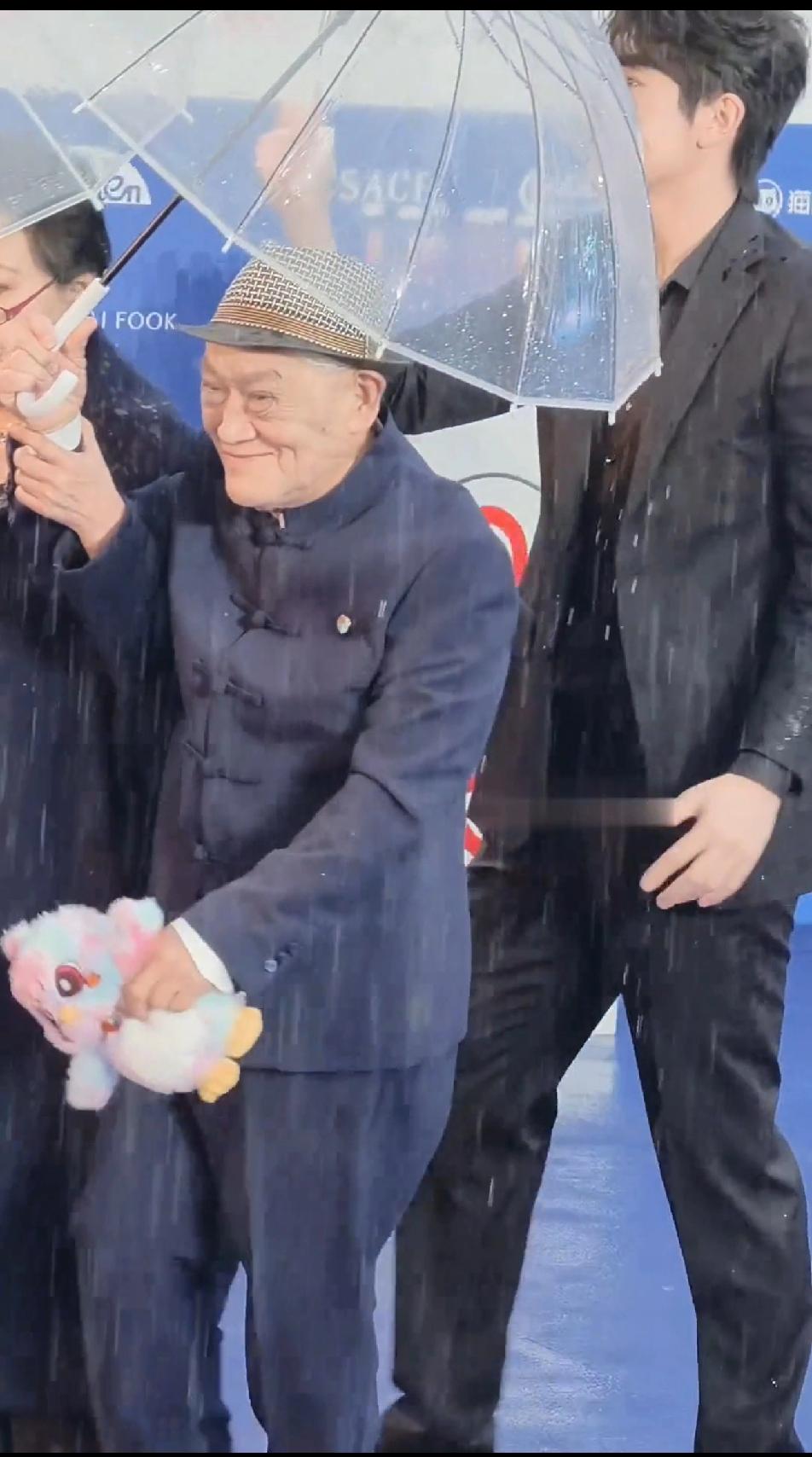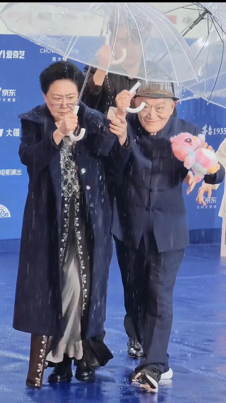 电影节主办方太能折腾90岁的牛犇老爷子!没有任何工作人员的陪同下,让76岁的斯琴高娃打着伞扶着90岁的牛犇下雨天走红毯?!上了年纪最怕摔跤,看牛犇老爷子走在这湿滑的路面上,让人提心吊胆!虽然老爷子举着吉祥物乐呵呵的,但旁边的斯琴高娃可是一点也乐呵不起来,她一直神情紧张的扶着看老爷子,生怕有一点闪失,斯琴高娃真的好,自己也是一大把年纪了,一点不矫情,伞一直偏牛犇那边,后面的帅小伙也不错,一直跟在身后给老爷子打伞,自己整个身子都淋湿了,感觉老爷子参加个电影节就是来历险的,这回是淋雨,上次是被安排和穿着恨天高的闫妮和张子枫走那么高的楼梯,闫妮穿那么高的鞋子和那么长的礼服照顾自己都困难,还得扶着老爷子,到最后都不知道是牛犇在扶闫妮,还是闫妮扶着牛犇了……电影节的组委会能不能为上了年纪的电影人考虑周到点?牛犇