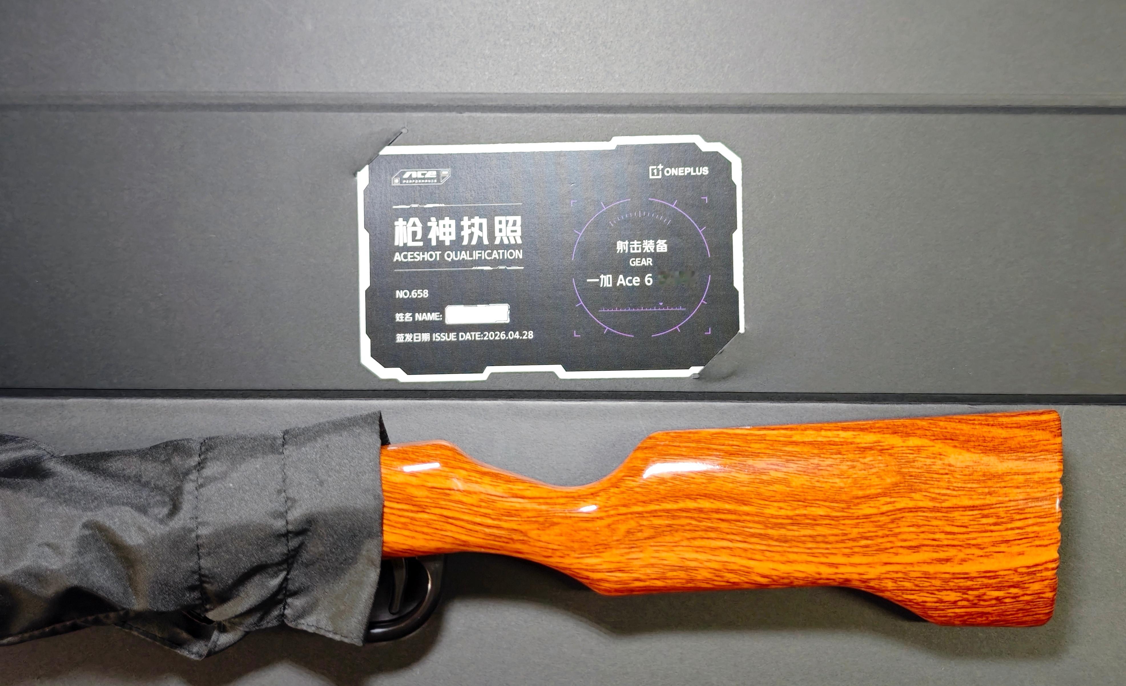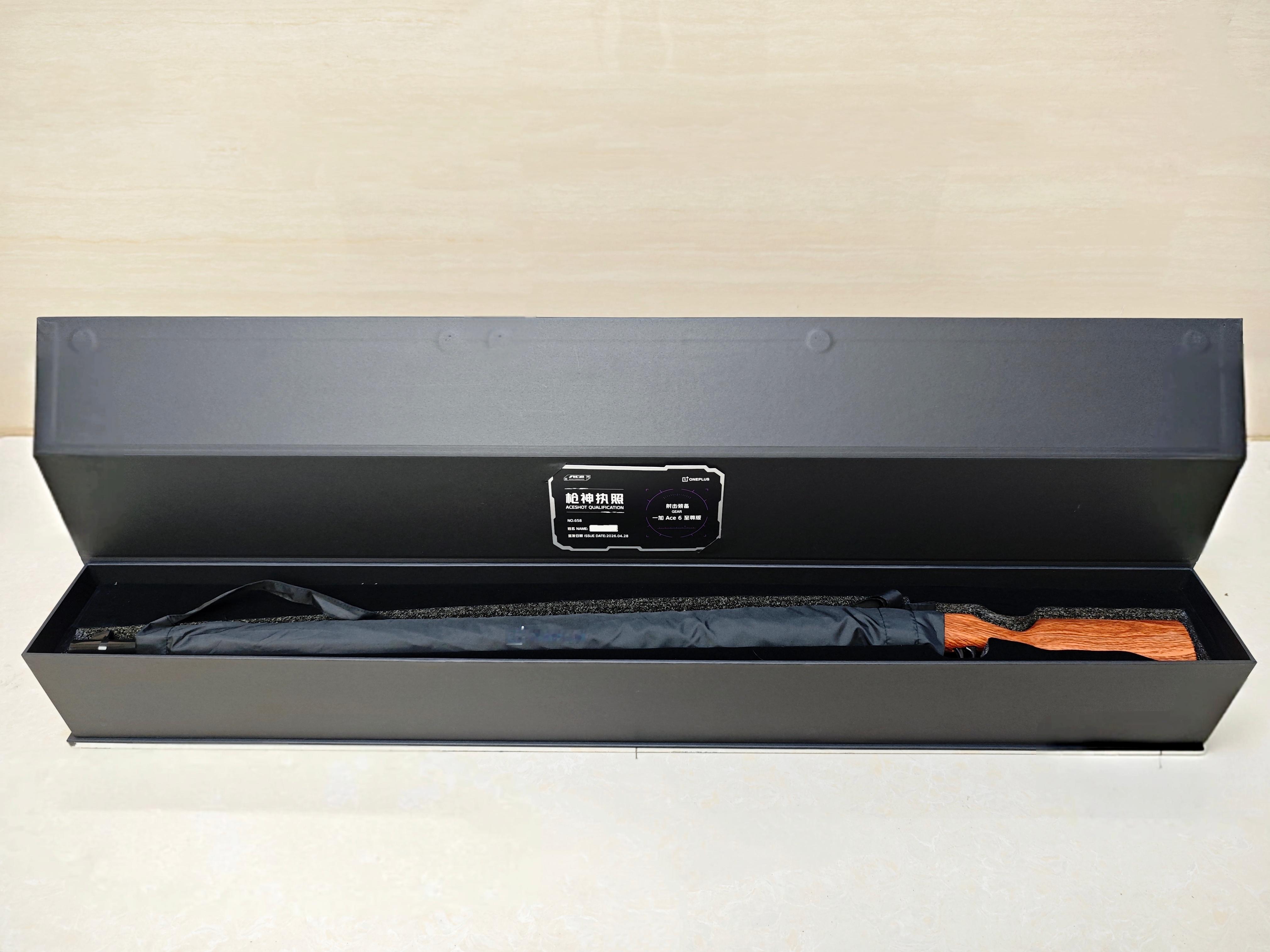一加Ace至尊版邀请函,直接来了一个98K,「枪型手柄的雨伞」。