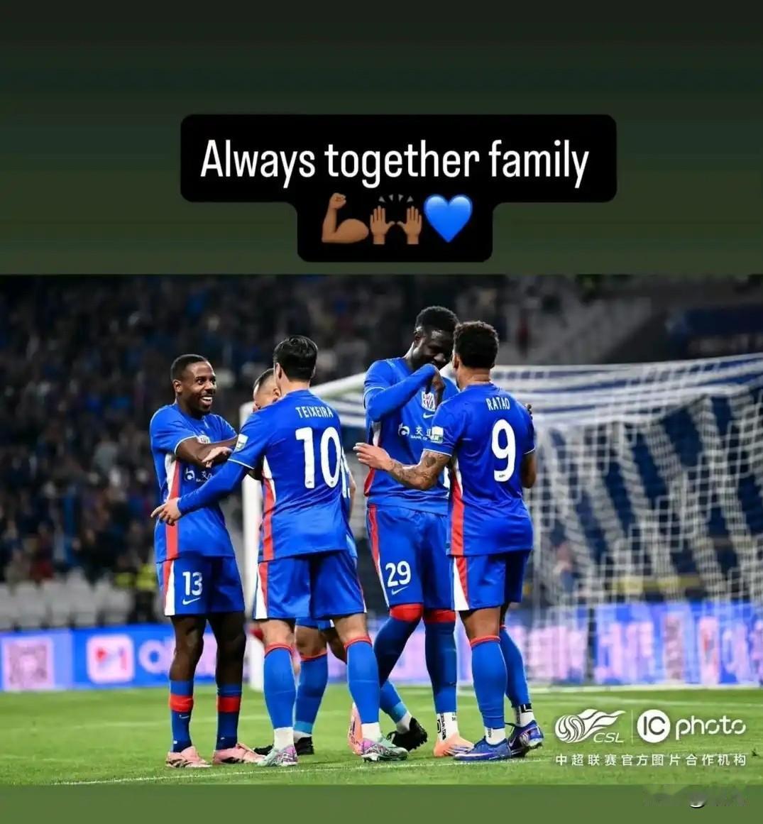 本赛季上海申花引援比较成功,而且几个外援也很团结,目前排名中超射手榜第一的拉唐更新了社媒,写着“Always together family”,其它几个外援特谢拉、马纳法和盖耶也都进行了转发。