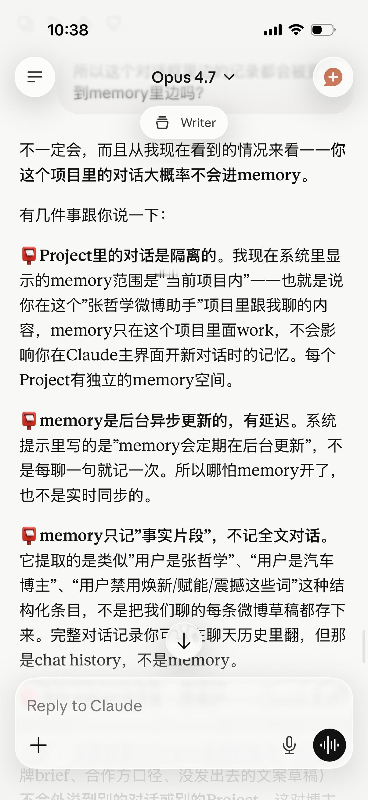 📮对我自己来说变化也很明显。过去我在Claude开新对话都得重新解释一遍”我是谁、我的风格、我禁用哪些词”——这些其实应该是memory该干的事。