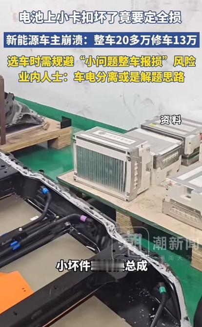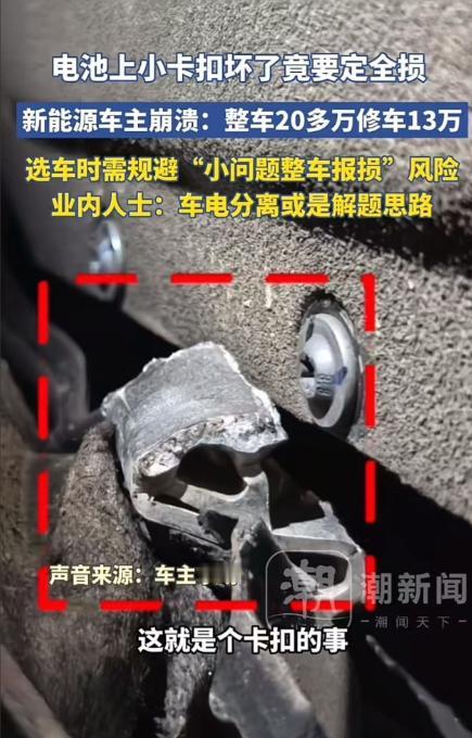 你敢信吗?一辆20多万的新能源汽车,才开了一个月,就因为底盘磕了一下,电池外包壳上一个卡扣断裂,直接被判定“全损”!