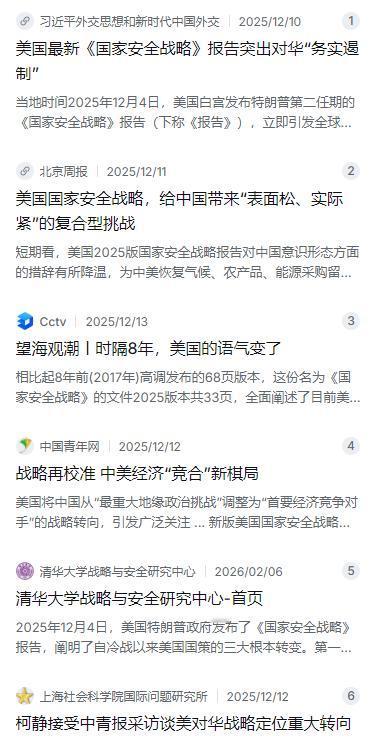 说句实话,现在中美这盘棋,确实走到了一个谁都输不起的坎儿上。美国人嘴上说着不打,可手底下那点小动作,已经把底牌掀得差不多了。他们早就不把咱们当“战略伙伴”看了,从根子上认准了中国是首要的竞争对手。2025年底白宫发的那份《国家安全战略》报告,虽然明面上措辞比前几年柔和了不少,甚至说中国是“实力近乎对等”的国家,但骨子里的逻辑一点儿没变——就是想用更低的成本、更精准的手段,把咱们拖进一场持久消耗战。
