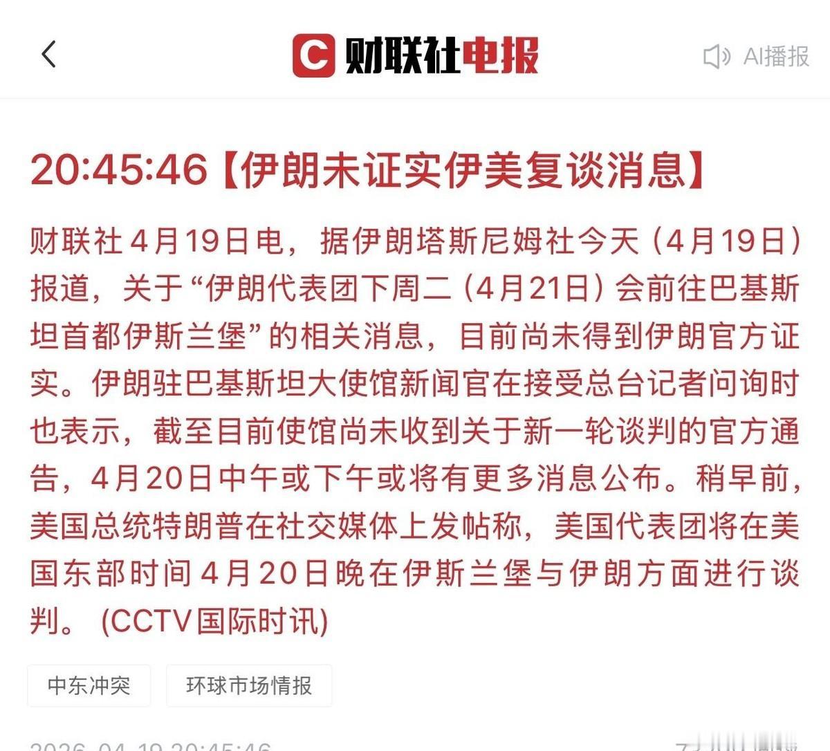 既然特朗普已经把复谈的底牌亮出来了,不管德黑兰现在怎么装聋作哑,下周的大概率事件依然是双方代表团准时抵达伊斯兰堡。