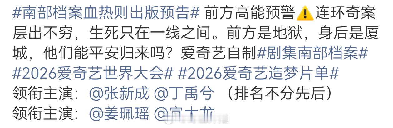 张新成 丁禹兮《南部档案》首版预告平番也没说按什么排序 谁是一番呢