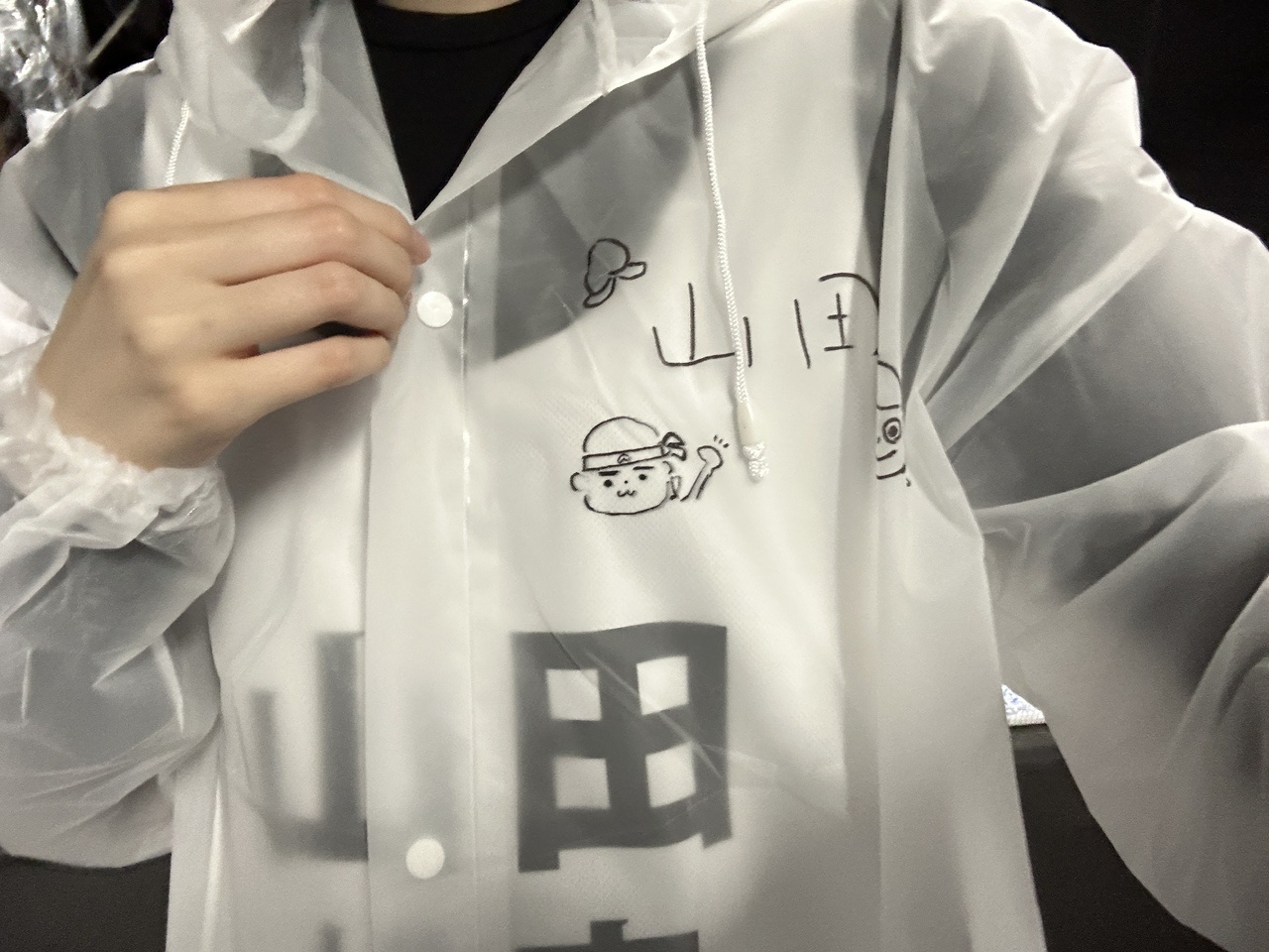 山田桃実「桃太郎かわいいですよね。気づいたら増えてました。誰が描いたと思う~?正解はね、石森さん、楽屋の席がね斜め前で、私が席を外した隙に描かれたらしい!地味に見えてるのは、岡山県の久米南町のご当地キャラクターのカッピー。ちーが岡山のキャラクターで調べて描いてくれた´-「かっぱ」と「ハッピー」でカッピーらしいです~かわいい^_^」