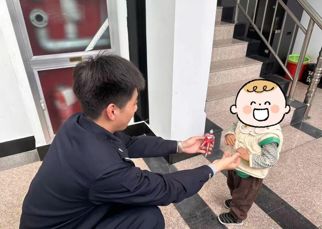 【萌娃偷溜上马路民警助其平安归家】4月17日中午, 岩寺派出所接到群众报警,称在