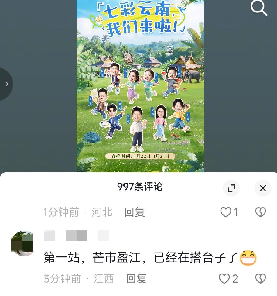 与辉同行阅山河云南行官宣海报来啦!这次的海报做的太可爱了!据粉丝朋友们透露,第一站是芒市盈江。因为有朋友已经看见在搭台子啦。