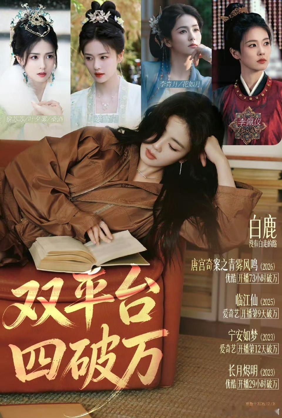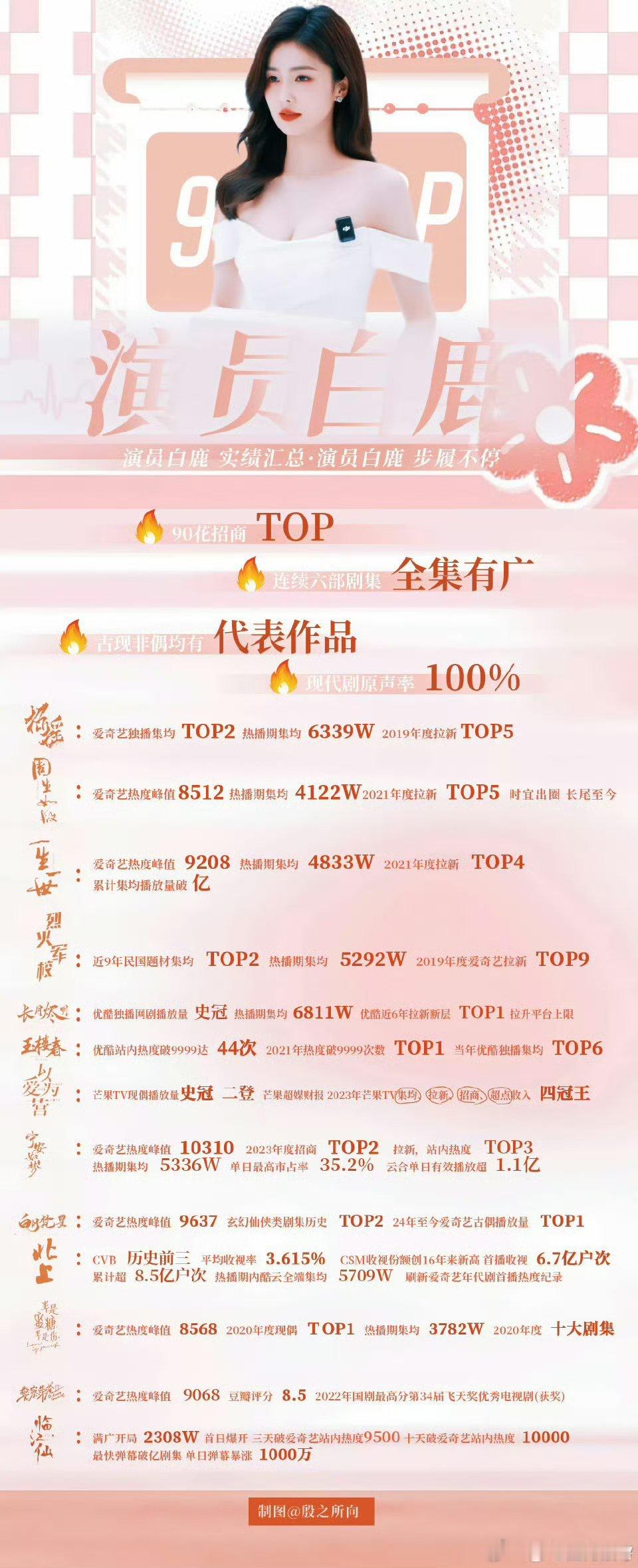 白鹿的观众缘是自带的,好多年前出道的那部剧网剧《大王不容易》,热播期内播放量破5亿+,热播期集均2500W+,因为时间太久远,这部剧后来给下掉了,所以现在很难统计到书局,下掉的时候已经破了8亿播放量,观众缘这东西除了积累以外,最主要还是靠演员的自身魅力!