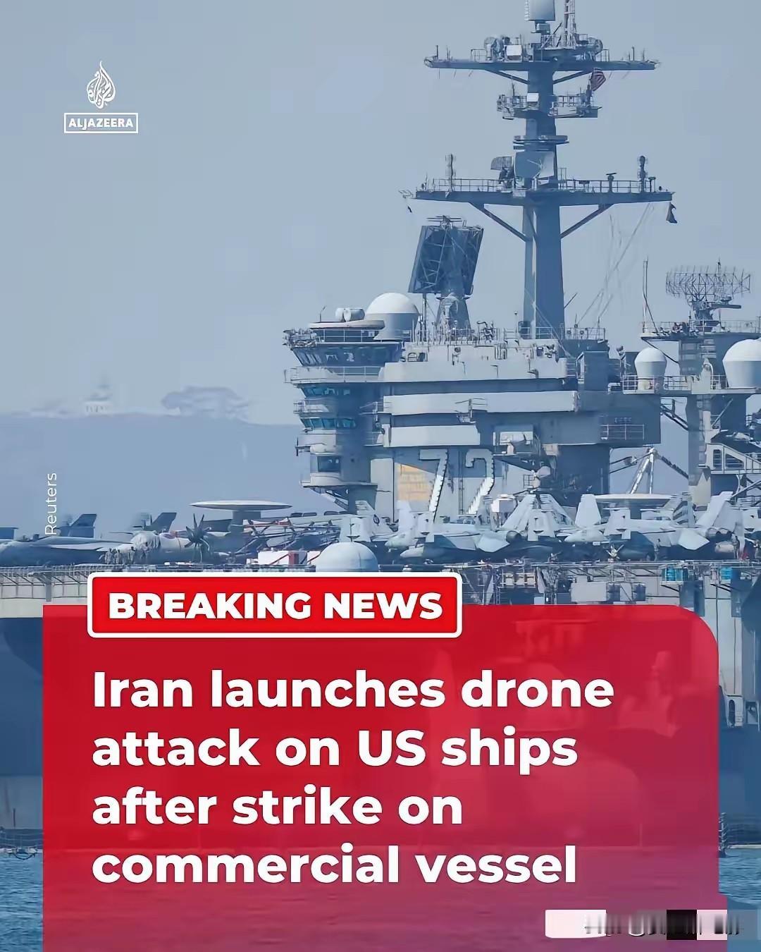 伊朗这下火了。你打我货轮,我就打你军舰。伊朗马上派出多架无人机,对附近的美军军舰发动打击。无人机群瞄准了美军的“斯普鲁恩斯”号驱逐舰,还有它的护航舰只。一顿饱和攻击,打得美舰赶紧机动躲避,最后撤出了那片海域。