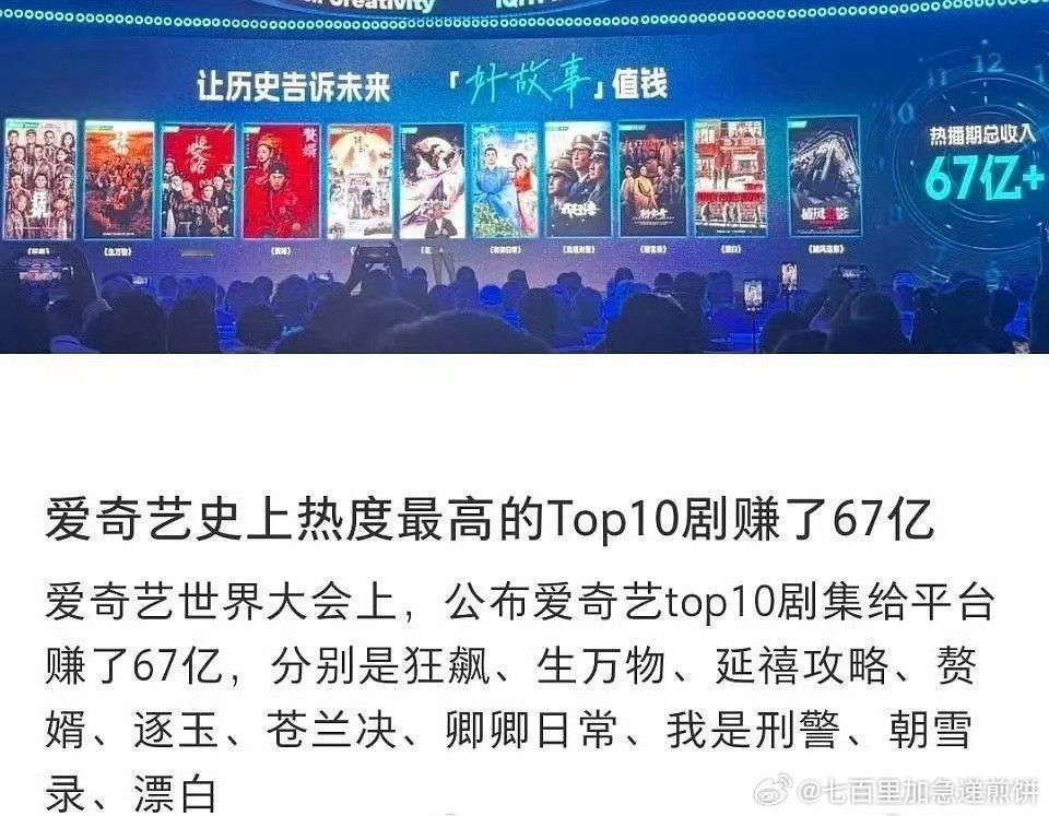 爱奇艺公布热度历史前十的剧集和电影