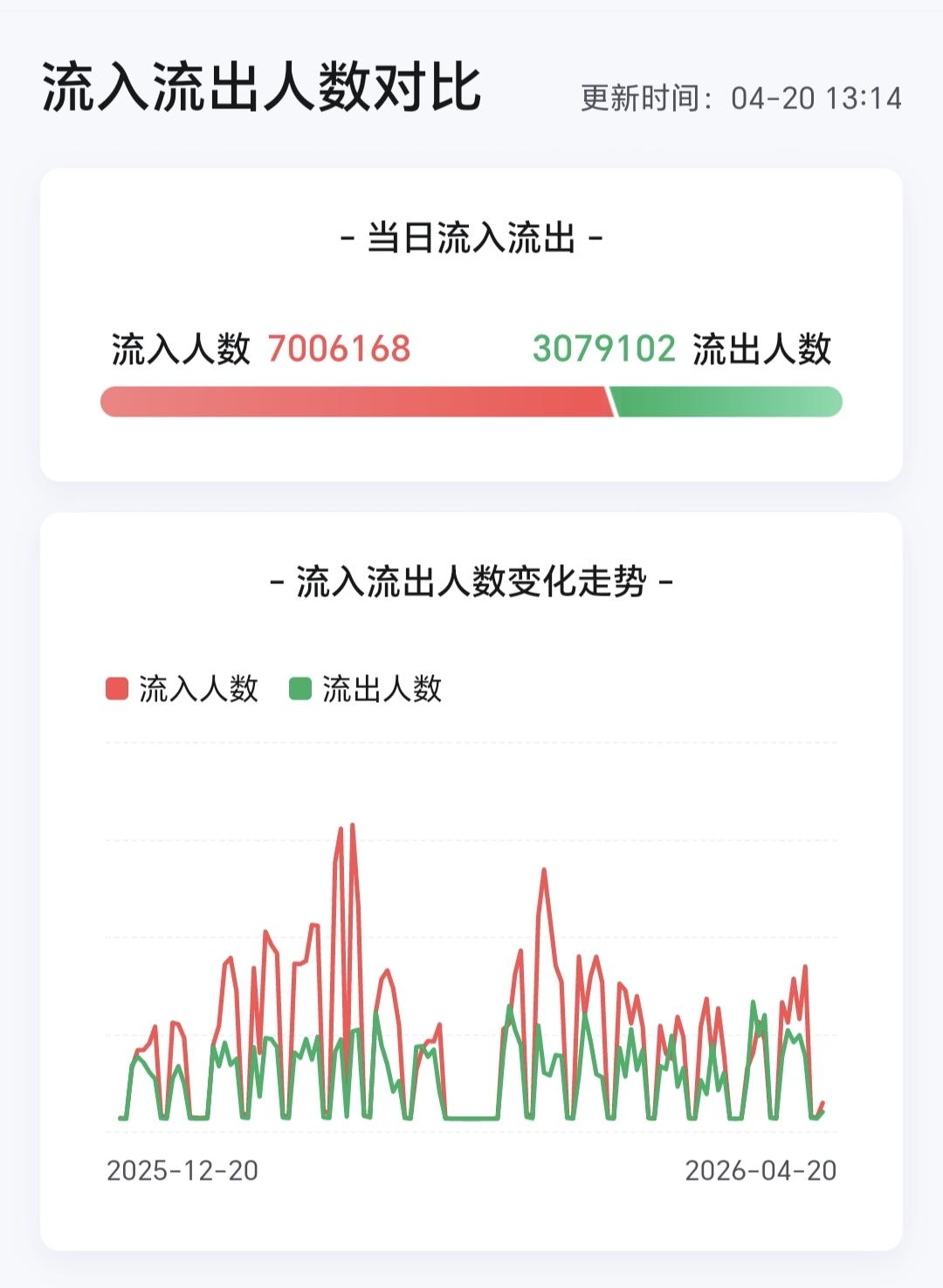 图9是今天板块的上涨排行榜,上涨幅度最大的三个板块是:商业航天板块,北证板块,消费电子板块,图10是今天板块的下跌排行榜,下跌幅度最大的三个板块是:锂矿板块,机器人板块,煤炭板块,图11是今天基金的加仓和减仓人数,加仓7006168人,减仓3079102人,加仓人数超过了减仓人数。