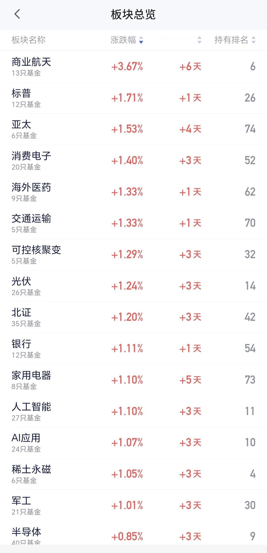 整个市场上涨幅度最大的三个板块是:商业航天板块,亚太板块,消费电子板块,下跌幅度最大的三个板块是:锂矿板块,机器人板块,创新药板块。
