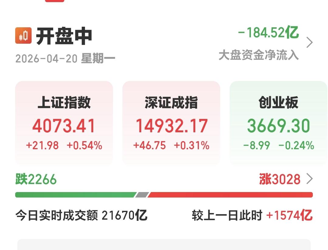 整个股票市场,上涨3028家,下跌2266家,两市累计成交21670亿,相比于上一个交易日同期放量了1574亿,主力资金净流出184亿。