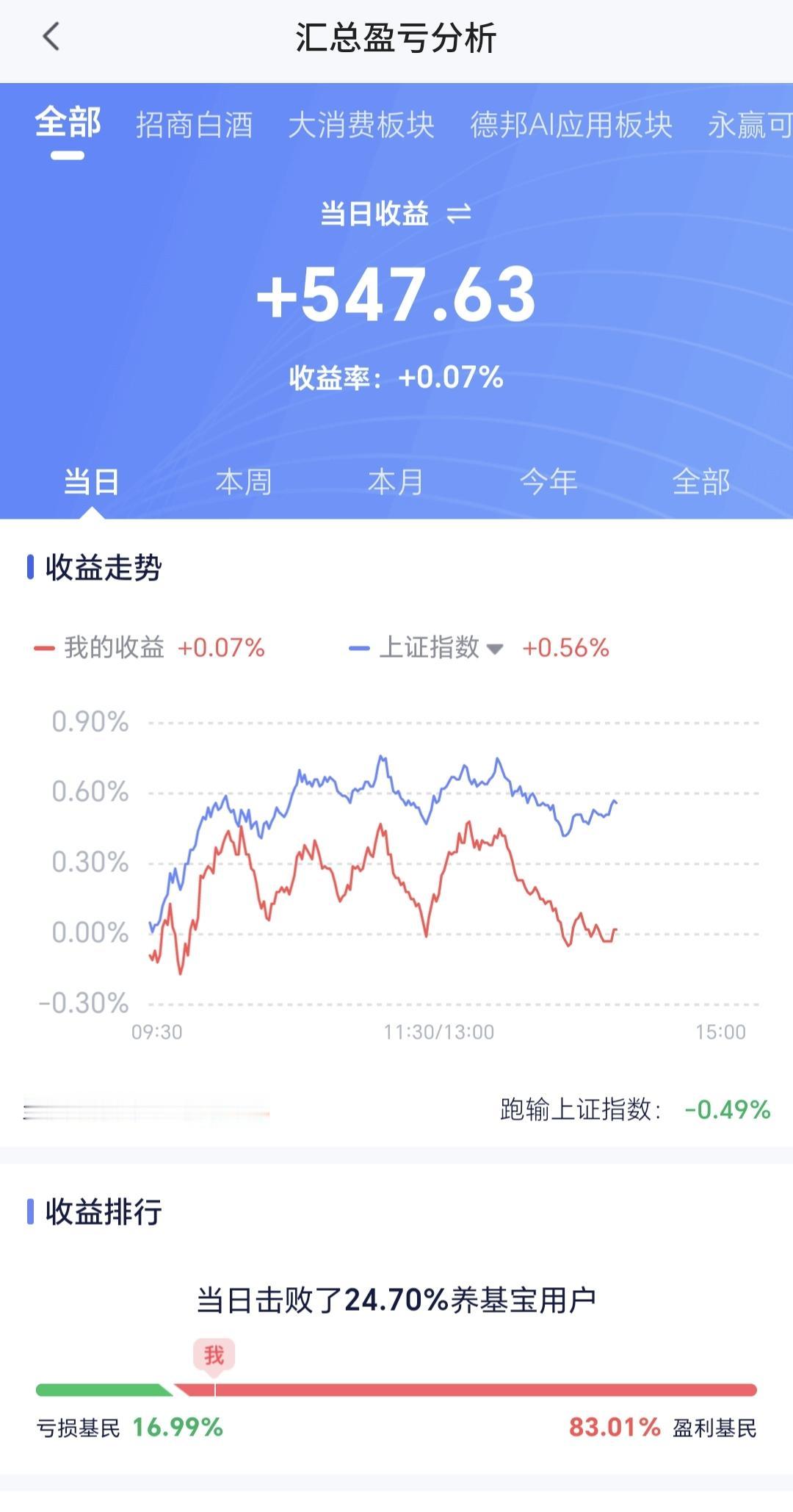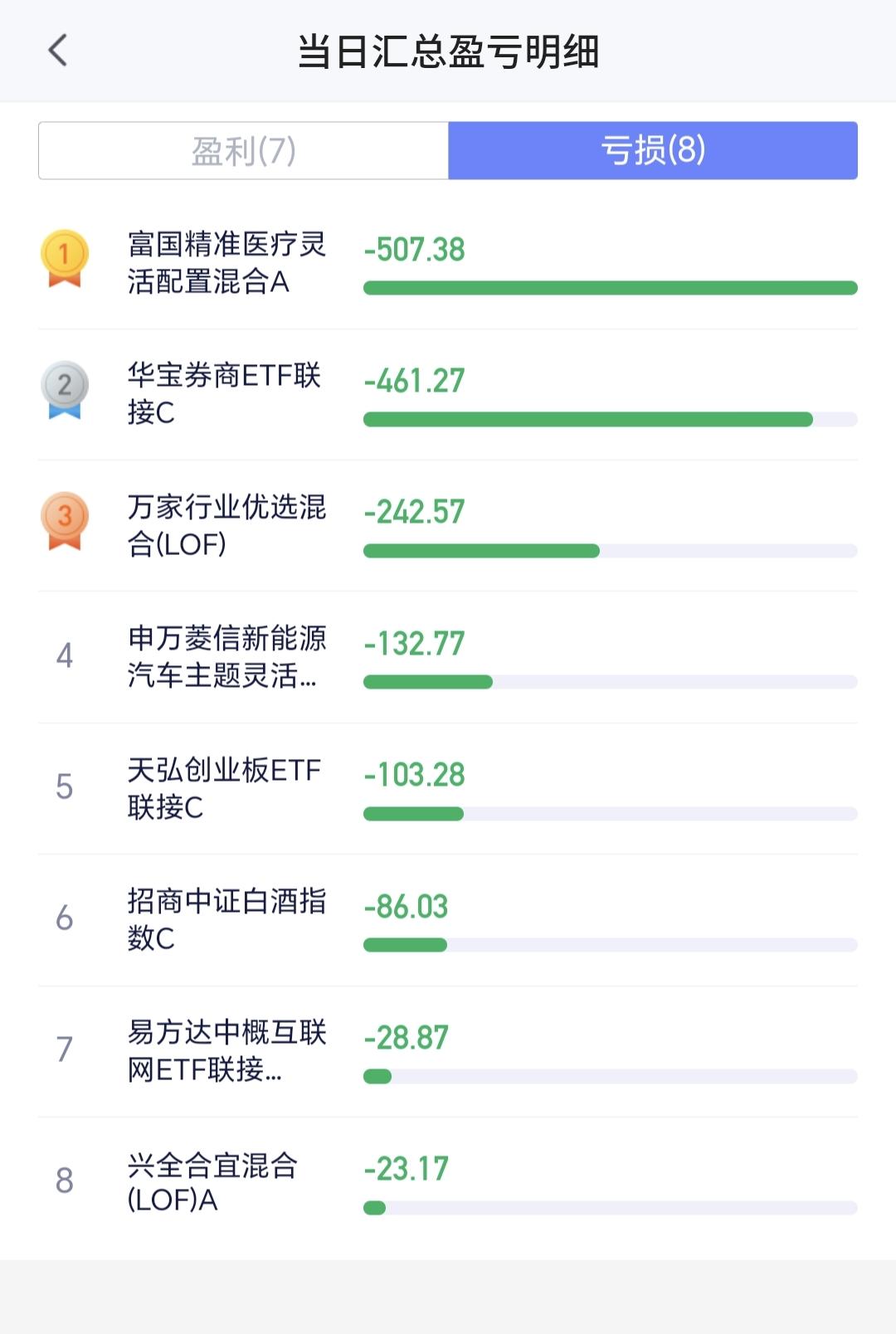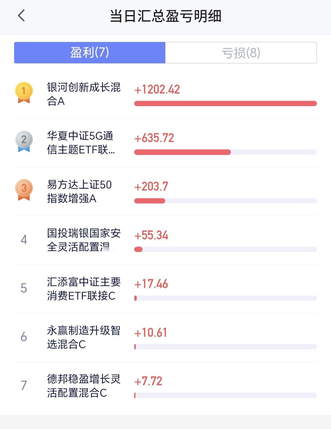 持有基金现在盘中估值上涨了547元,盈利金额最大的三个板块是:芯片半导体板块,5G板块,上证50板块,亏损金额最大的三个板块是:创新药板块,证券板块,先进制造板块。
