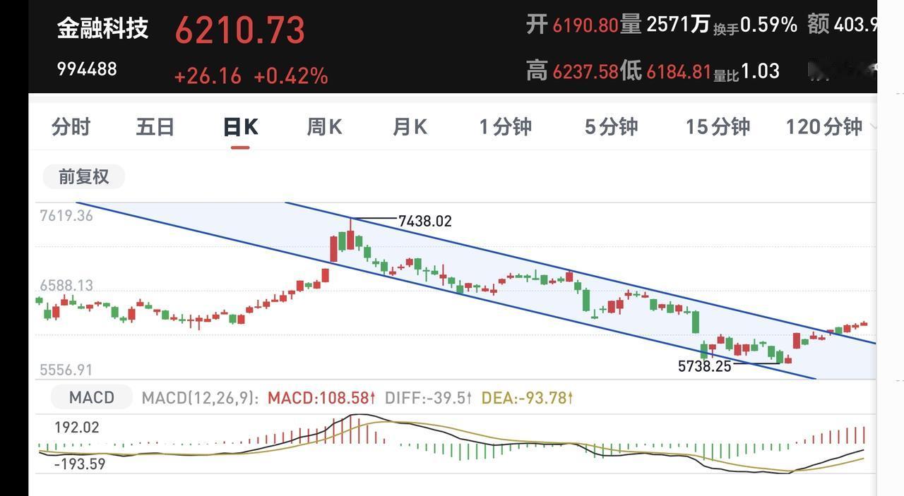 金融科技板块前段时间上涨突破了日线级别下跌通道的上轨线,现在是处于有效突破当中,在突破下跌通道上轨线的时候,就可以考虑要不要进场,短线持有的人现在可以继续持有。