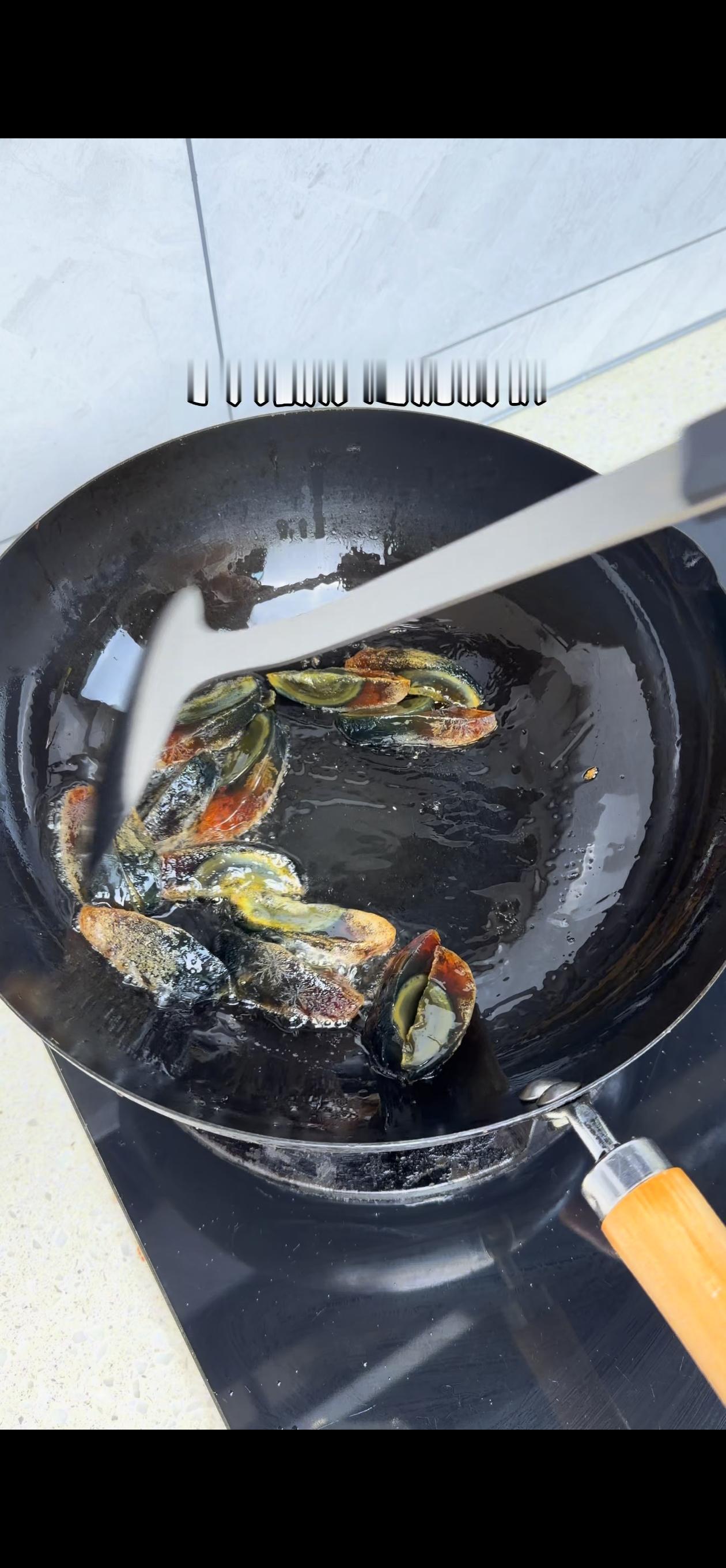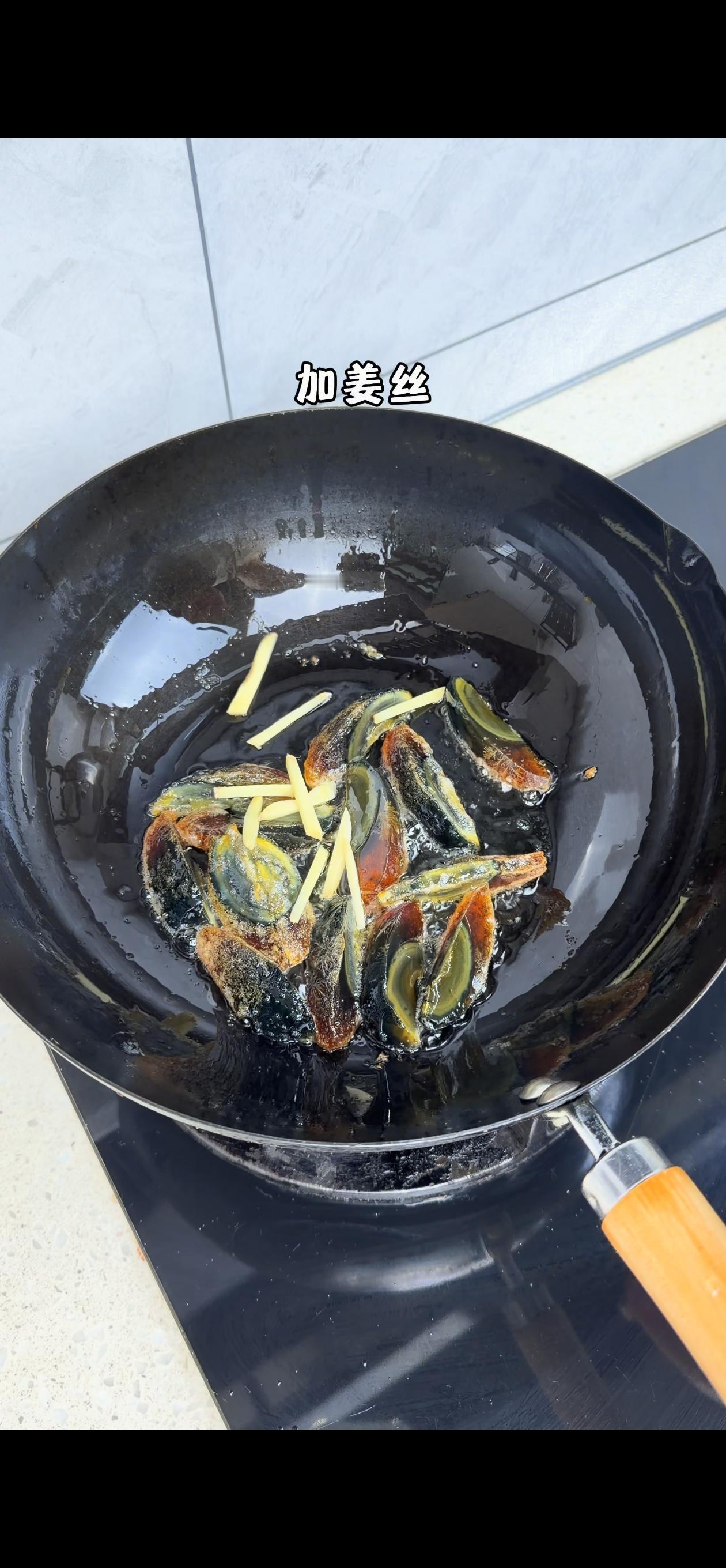2️⃣炒制皮蛋:油热后下入皮蛋,小火翻炒至表面起虎皮状,香气瞬间扑鼻~