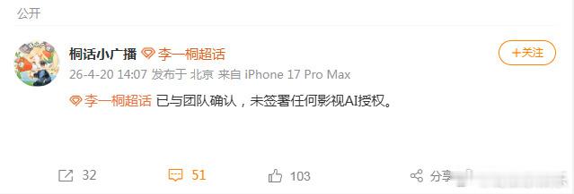 多位艺人方否认签署AI授权看到张若昀、王楚然、李一桐先后发声否认 AI 授权,能够清晰感受到艺人方对肖像权、声音权及表演权益的重视,面对谣言第一时间正面回应,态度十分坚定。
