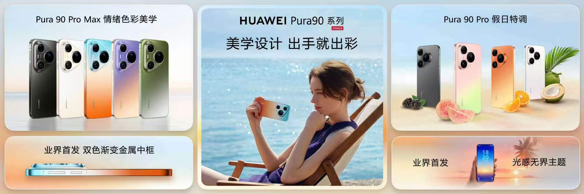 7种渐变色每一款都长在审美点上,橘子海、翡翠湖……光是看着就感觉吹到了海边风、晒到了春日暖阳。Pro Max的双色渐变金属中框太绝了,高级质感直接溢出屏幕;光感无界主题更是魔法加成,随手一拍都是氛围感大片。这颜值谁能不心动啊!果断列入年度颜值天花板清单!Pura90一口气连发7种渐变色没有人比余承东更懂渐变