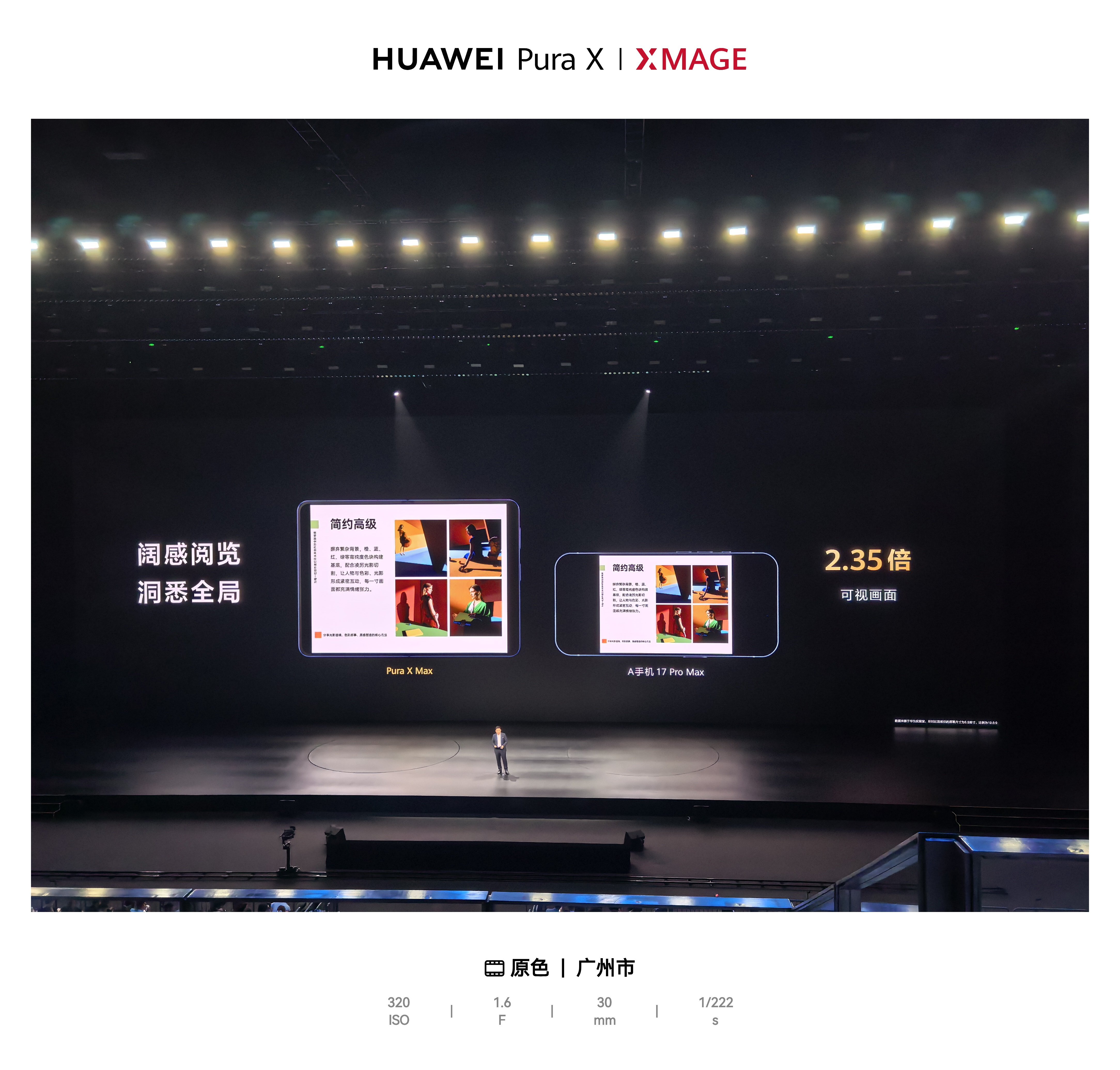 以前折叠屏影像只是“能用”,现在华为Pura X Max直接做到了“好用、会教”。把AI智慧和折叠形态深度结合,真正降低了出片门槛,堪称折叠屏里的人像智拍神器。 广州·大湾区文化体育中心
