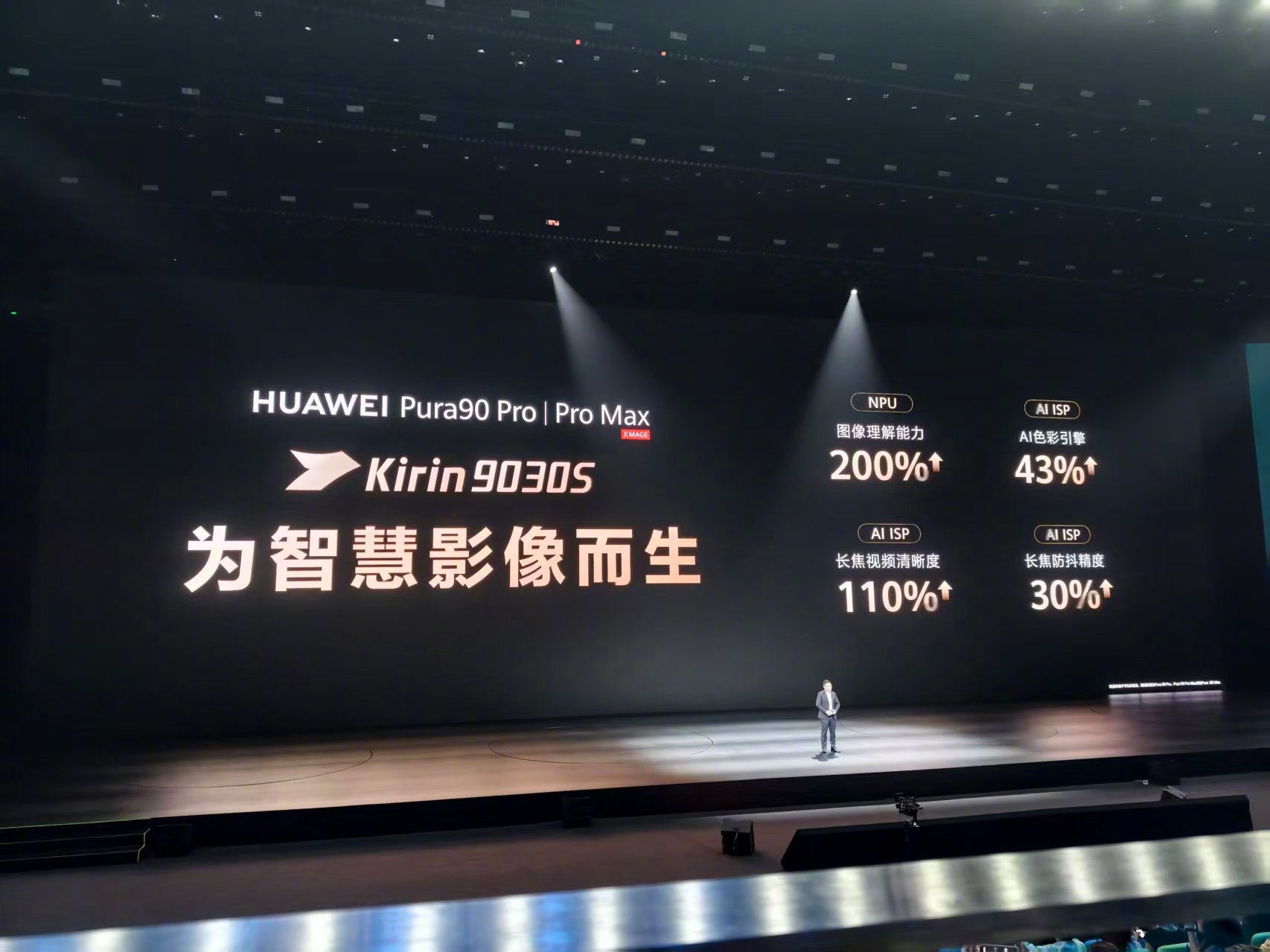 影像方面,Pura90 Pro/Pro Max搭载麒麟9030S处理器,NPU图像理解能力提升200%,AI色彩引擎提升43%,长焦视频清晰度提升110%,长焦防抖精度提升30%。华为Pura90 Pro配备1250万像素超广角摄像头,F2.2光圈,RYYB;主摄为5000万像素,1/1.28英寸大底,支持F1.4-F4.0十档物理可变光圈、OIS,采用RYYB;长焦部分为超聚光微距长焦,支持4倍光学变焦、8倍光学品质变焦,规格为5000万像素,F2.1大光圈,支持OIS,采用RYYB,同时配备第二代红枫原色摄像头。