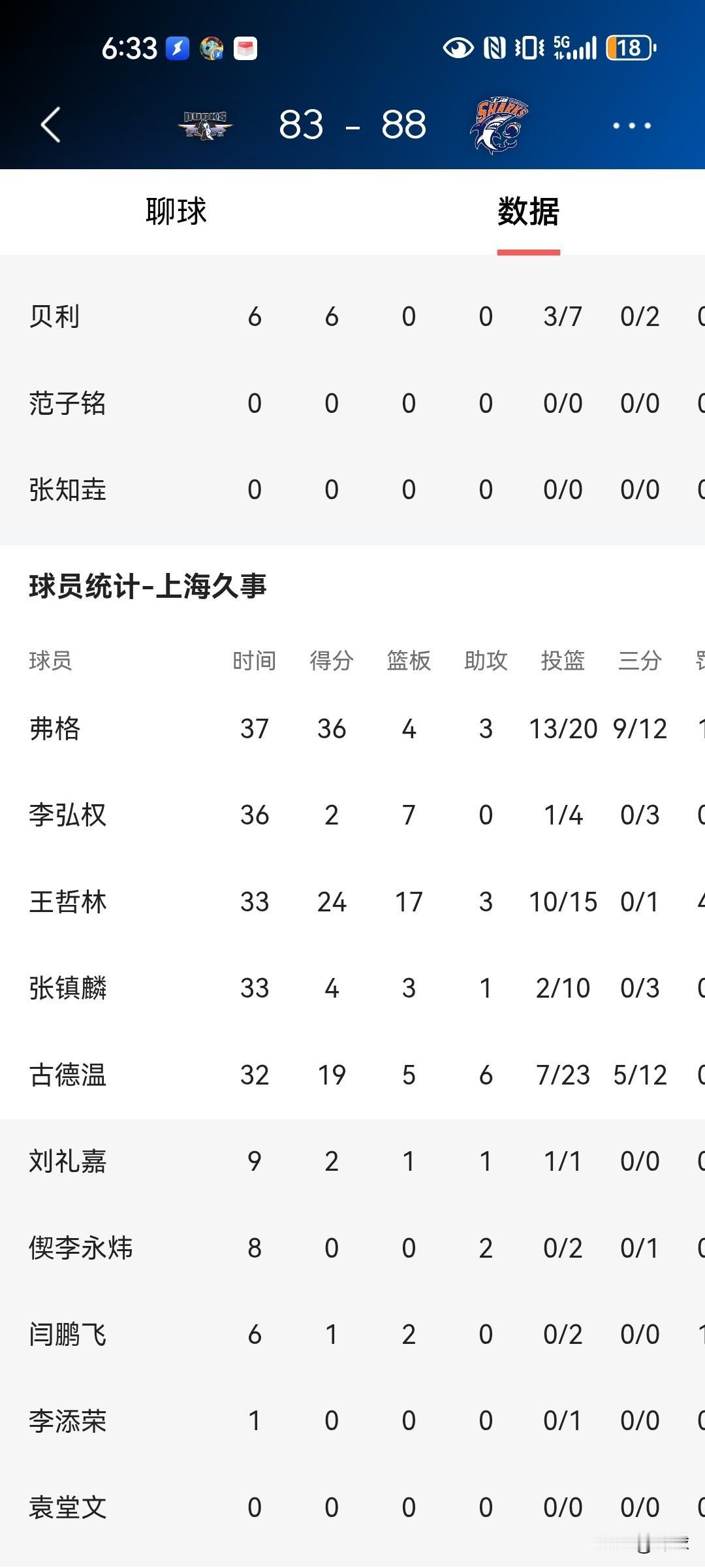 昨天在CBA焦点战上海对北京首钢的比赛中,上海队小外弗格20投13中,三分球12投9中,全场得到36分,帮助上海队取胜。