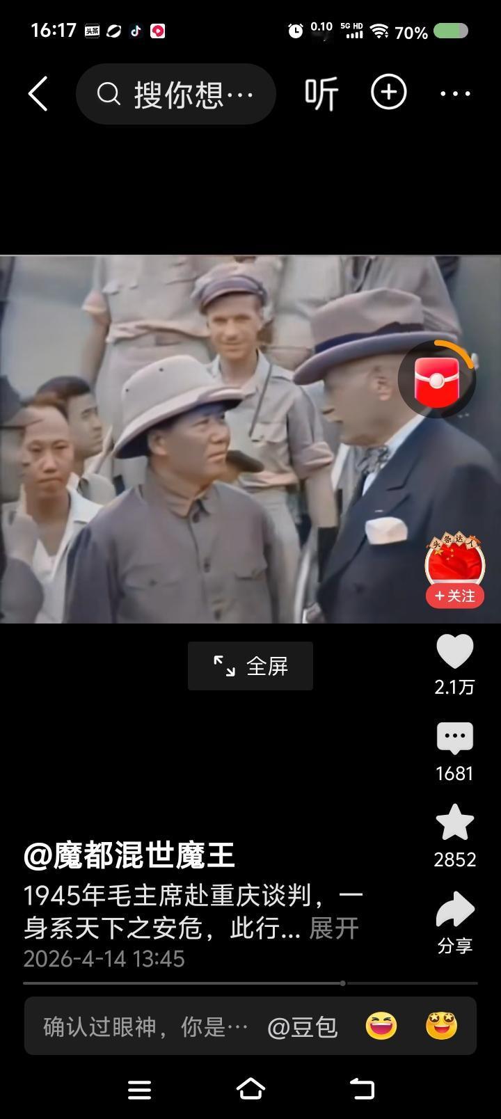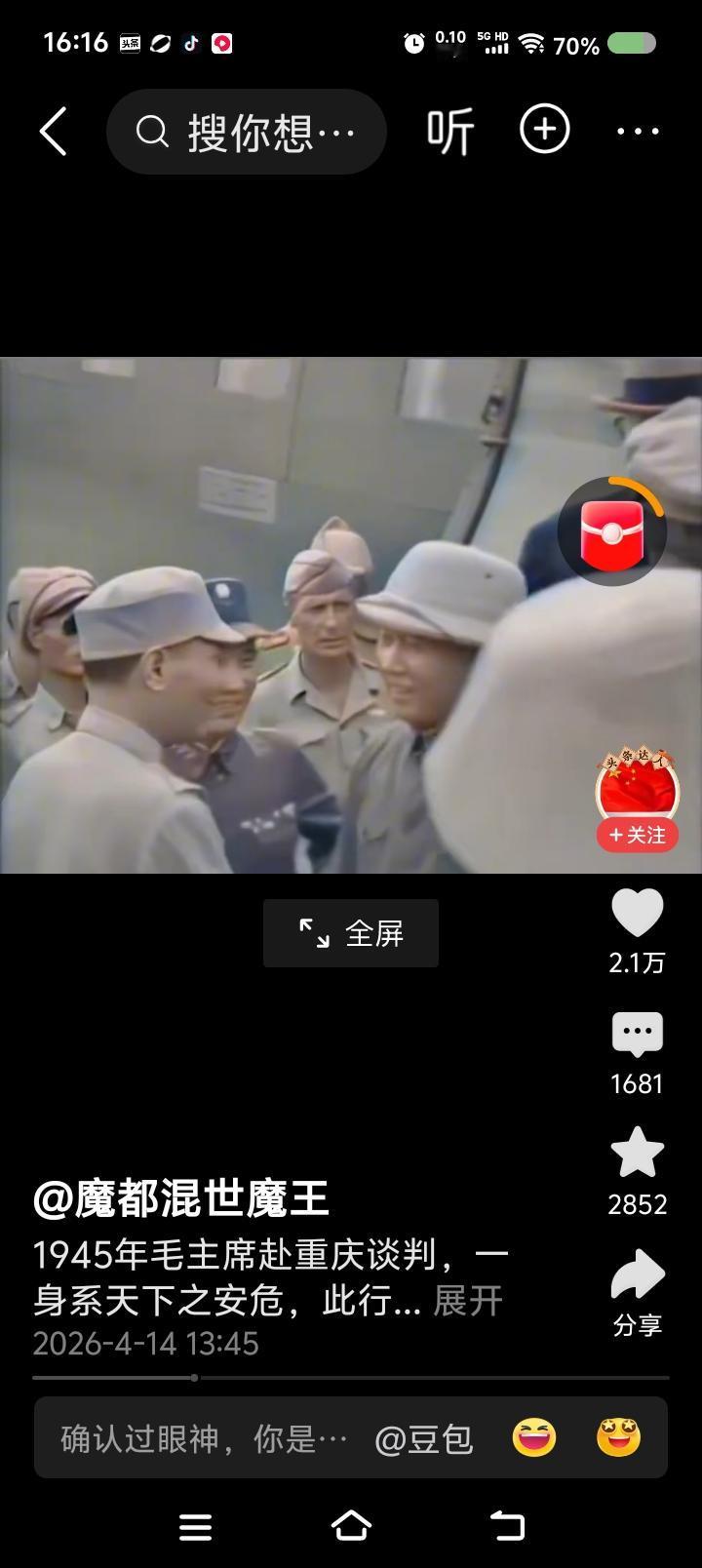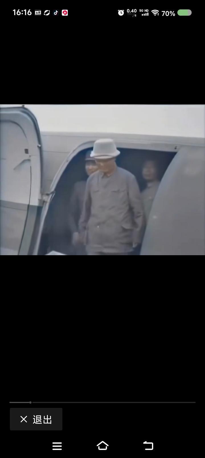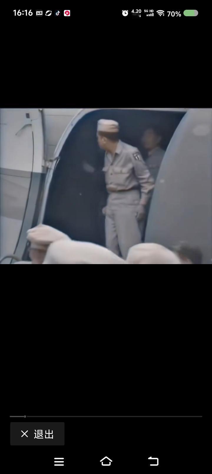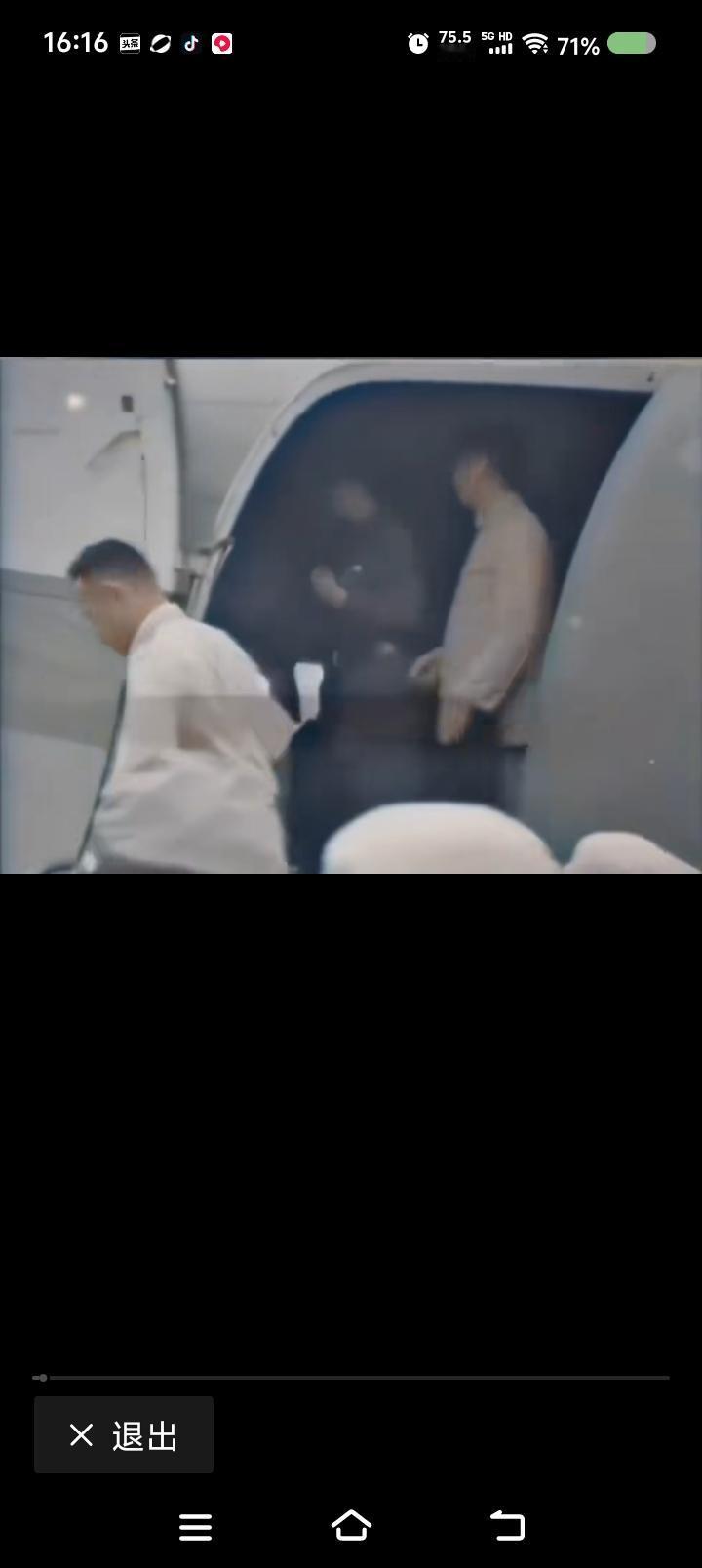 网上播放的新闻视频:毛泽东赴重庆谈判,下飞机前后的场面。