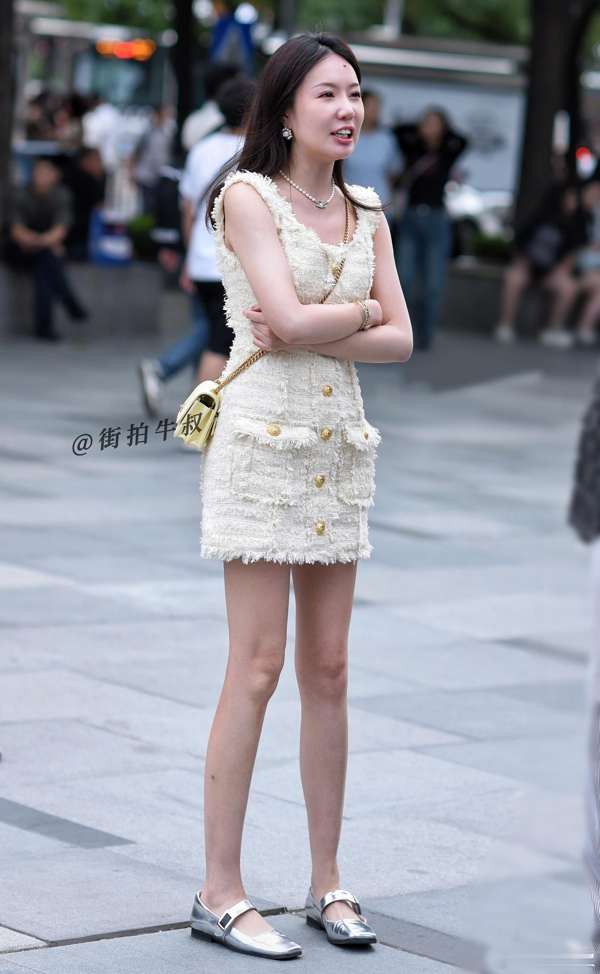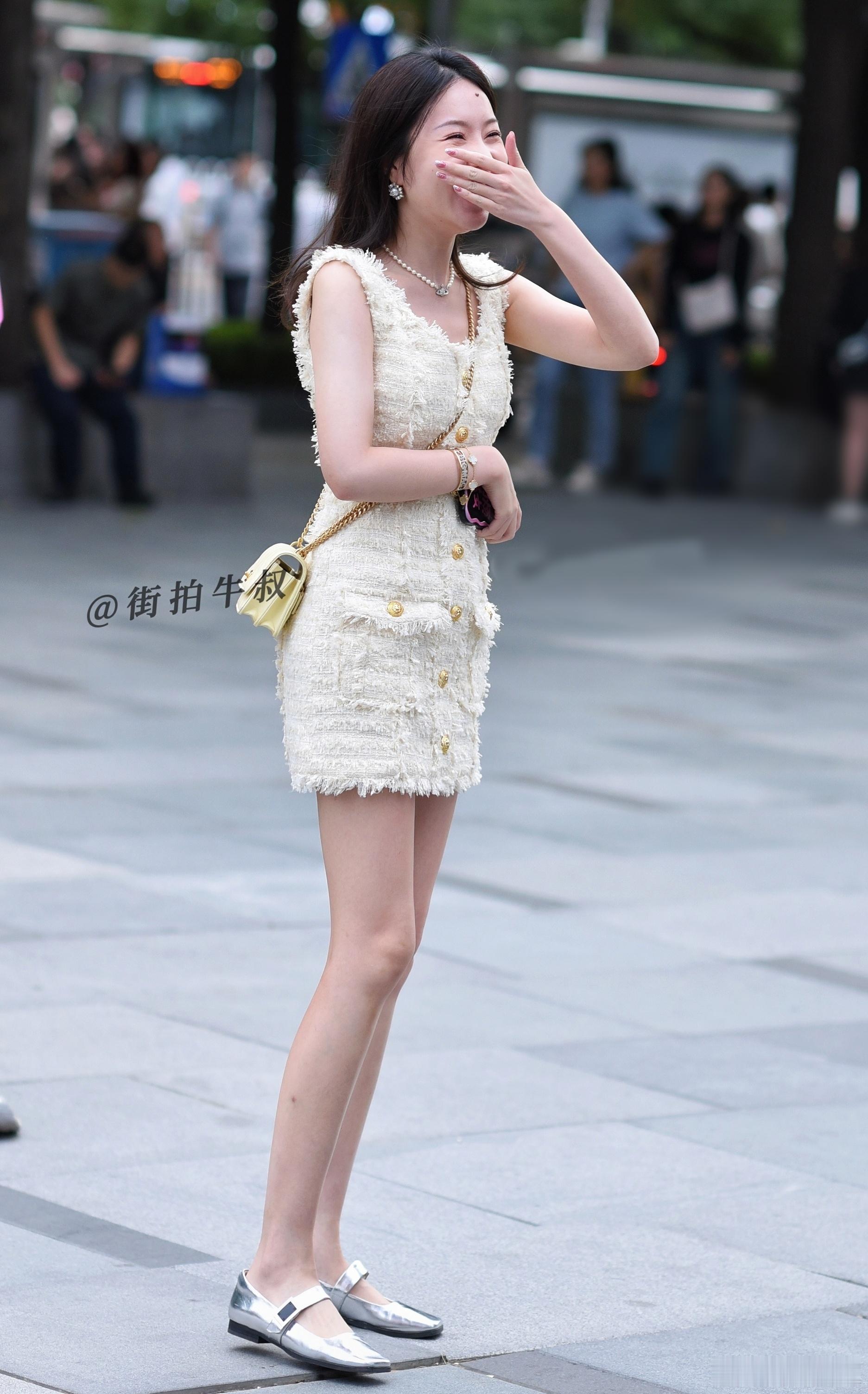 米色连衣裙简直是优雅气质的代名词!就像袁冰妍天台写真里穿的那件,小V领凸显纤细脖
