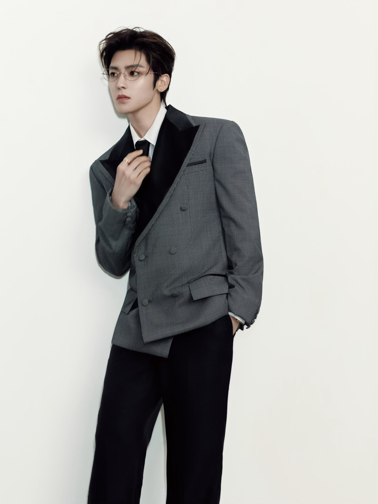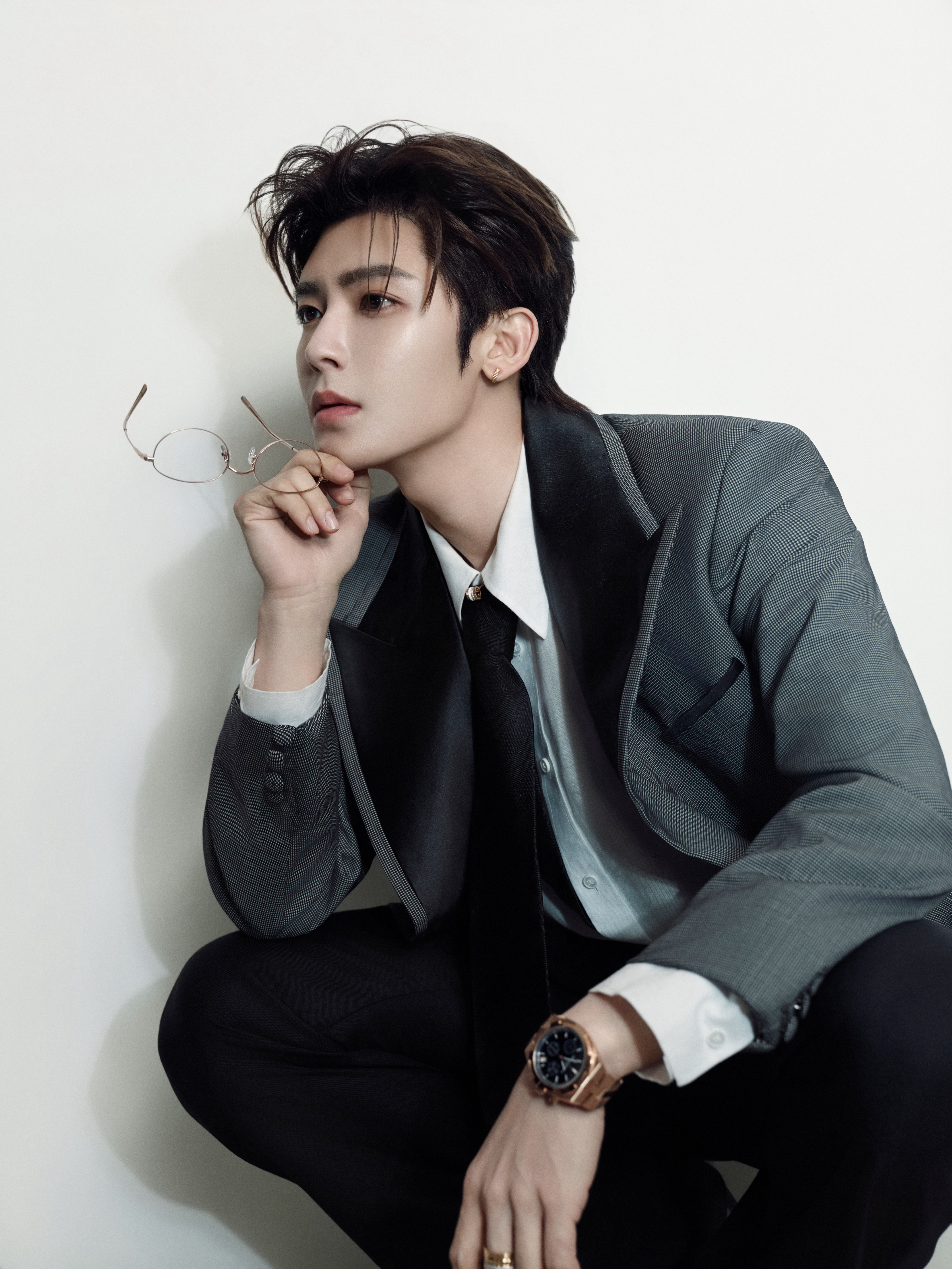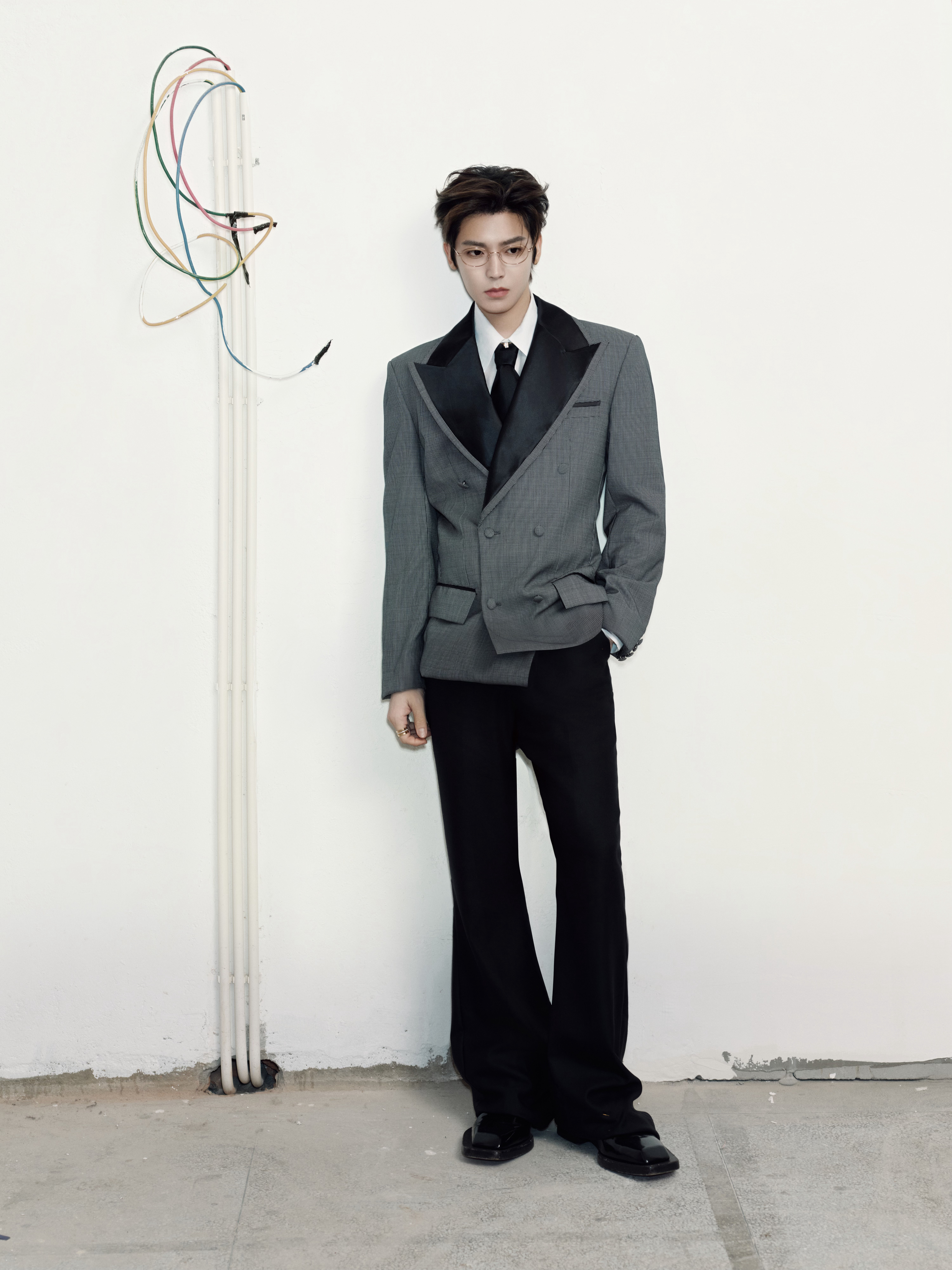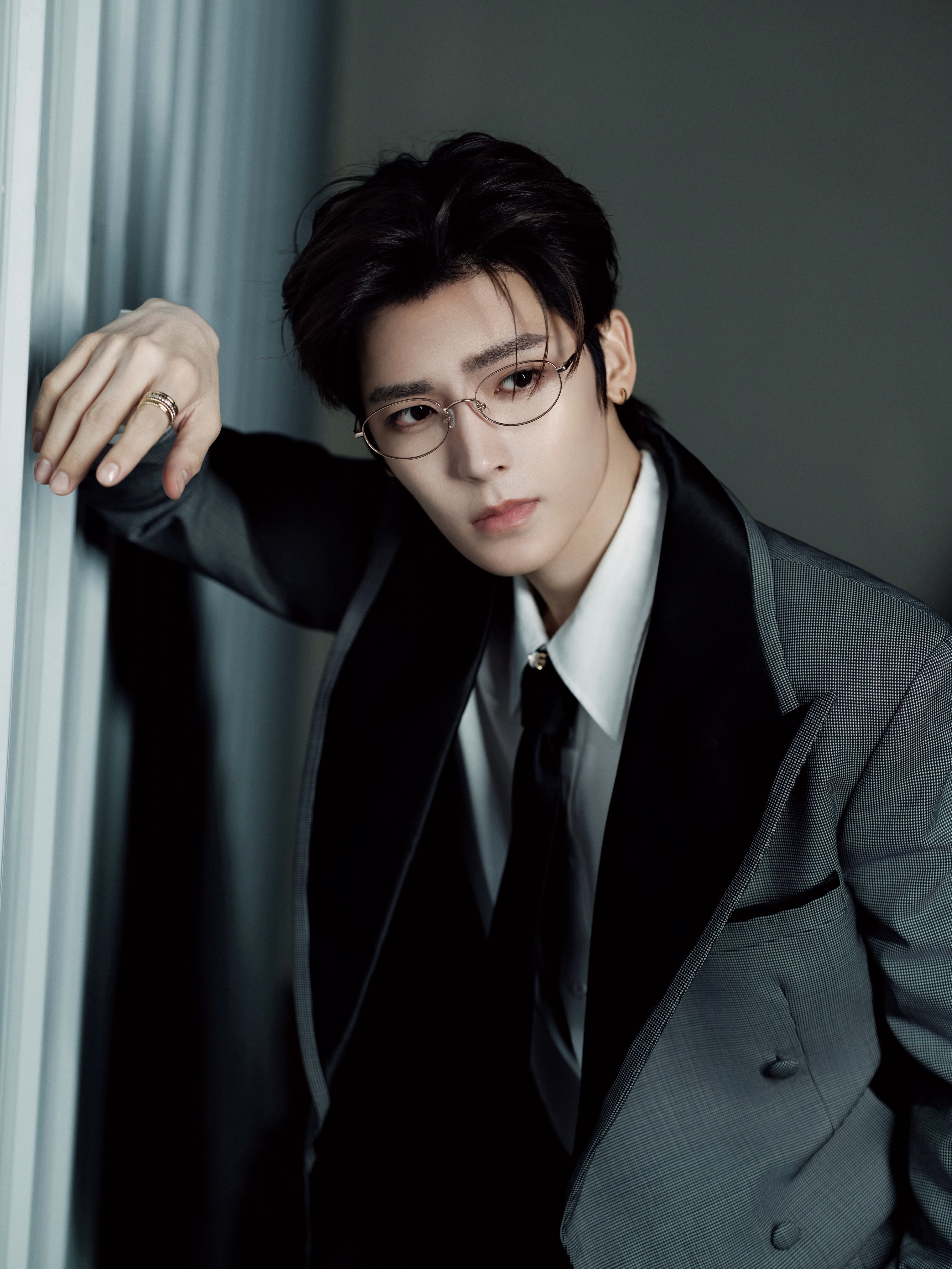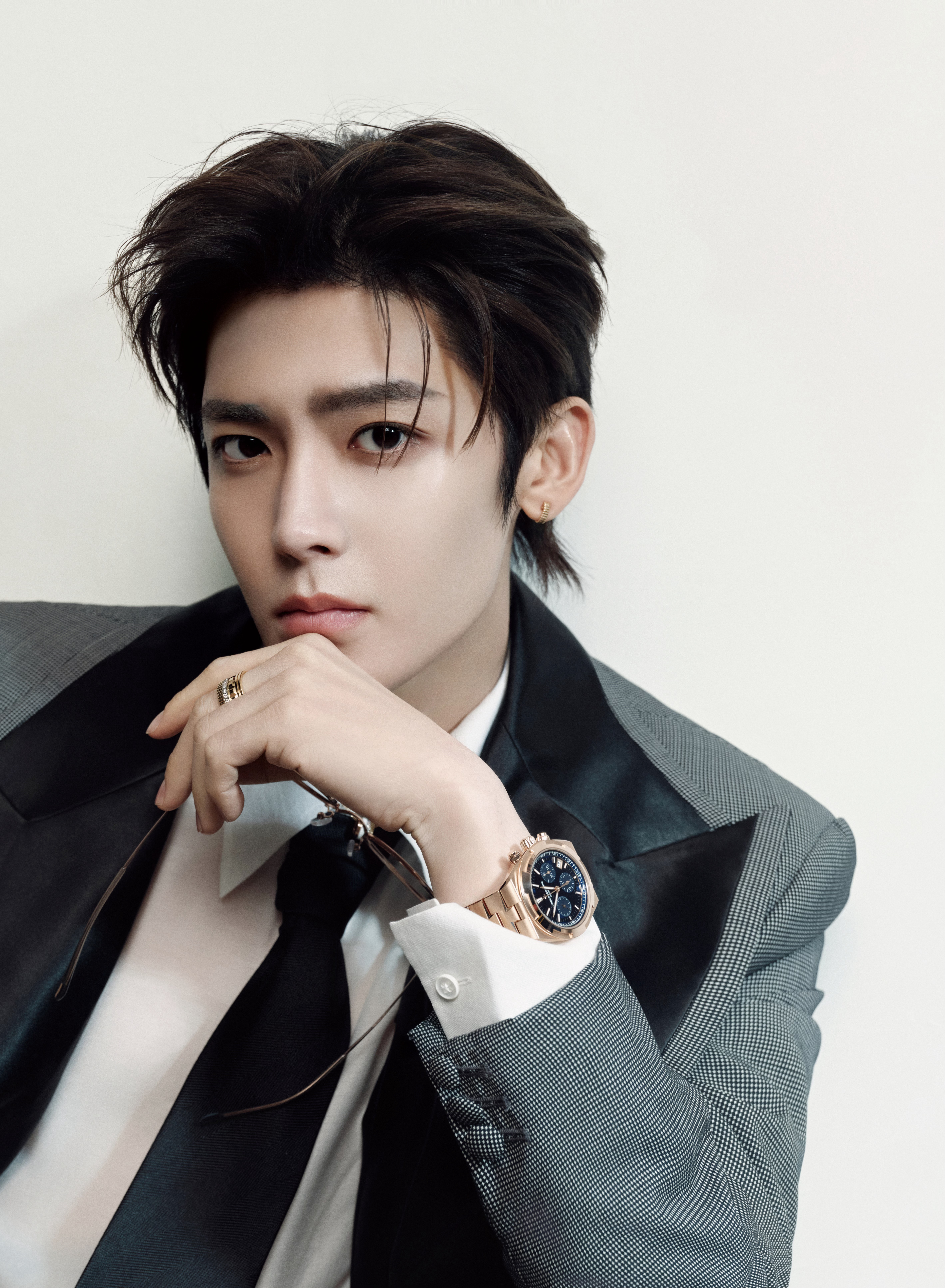 今日爱奇艺世界大会营业,身穿灰黑撞色戗驳领西服套装搭配Boucheron宝诗龙珠宝与Vacheron Constantin 江诗丹顿腕表出镜,点缀一副金丝眼镜,携新作「雀骨」亮相,优雅权威、贵气十足~🩶
