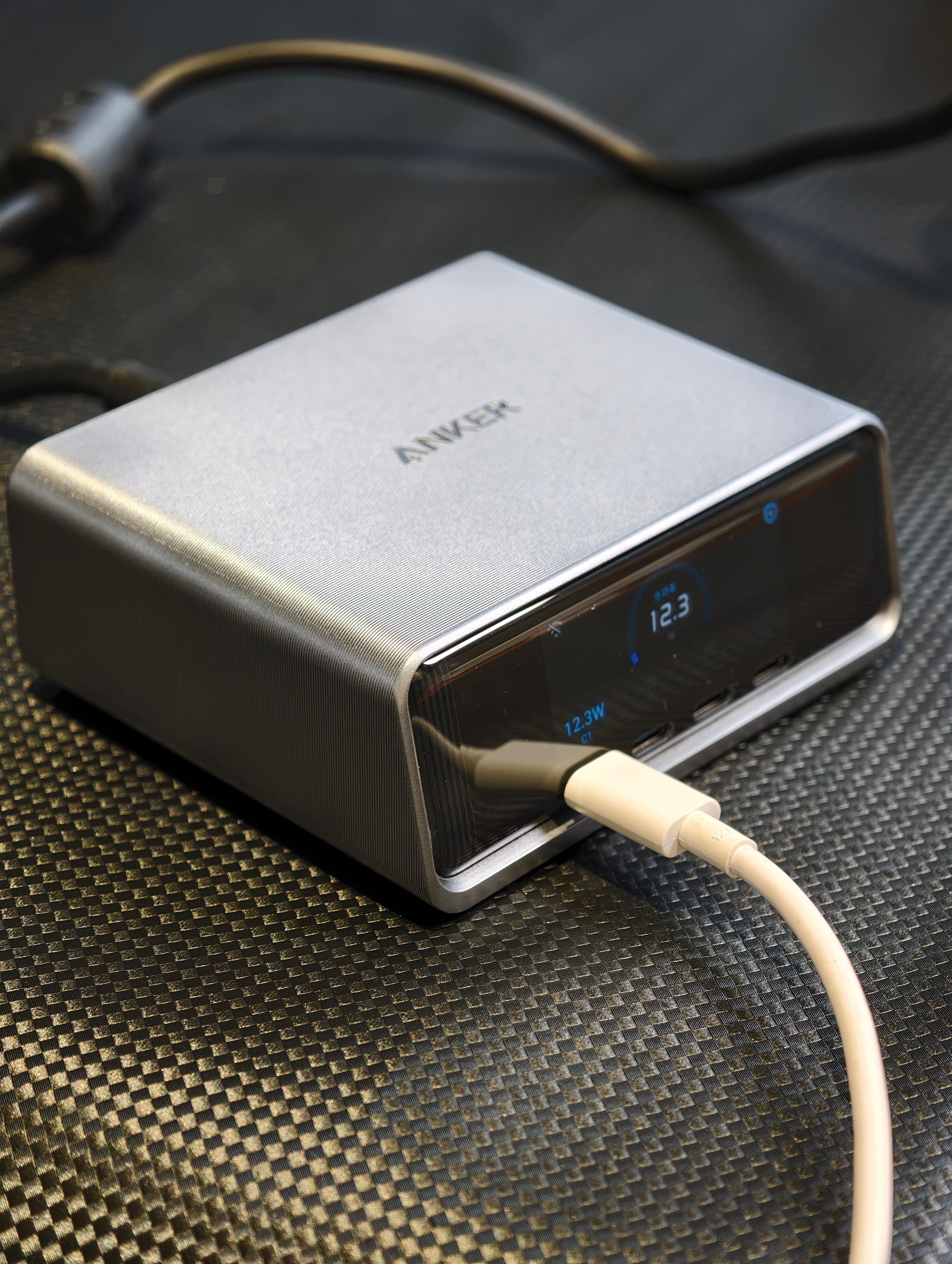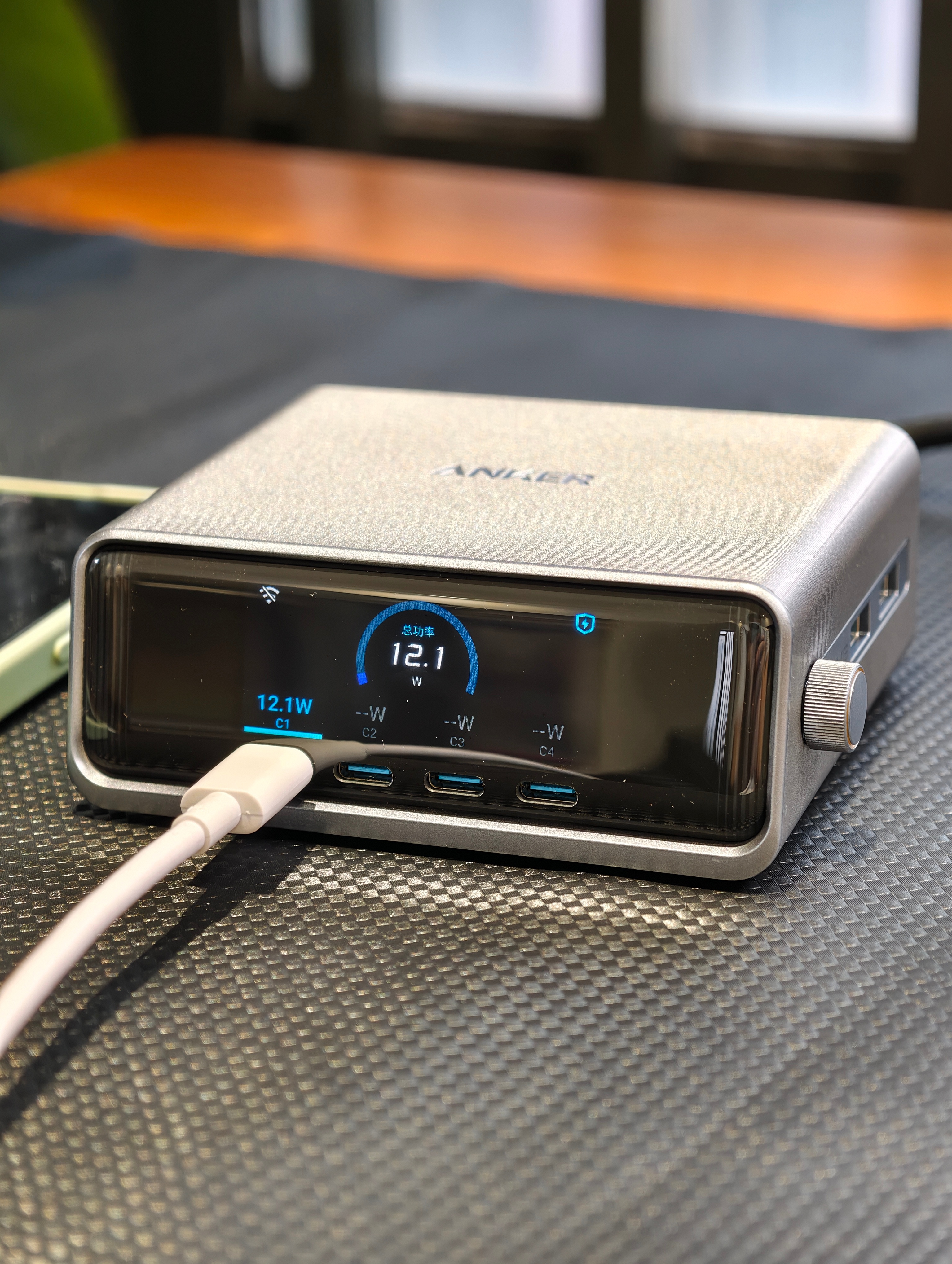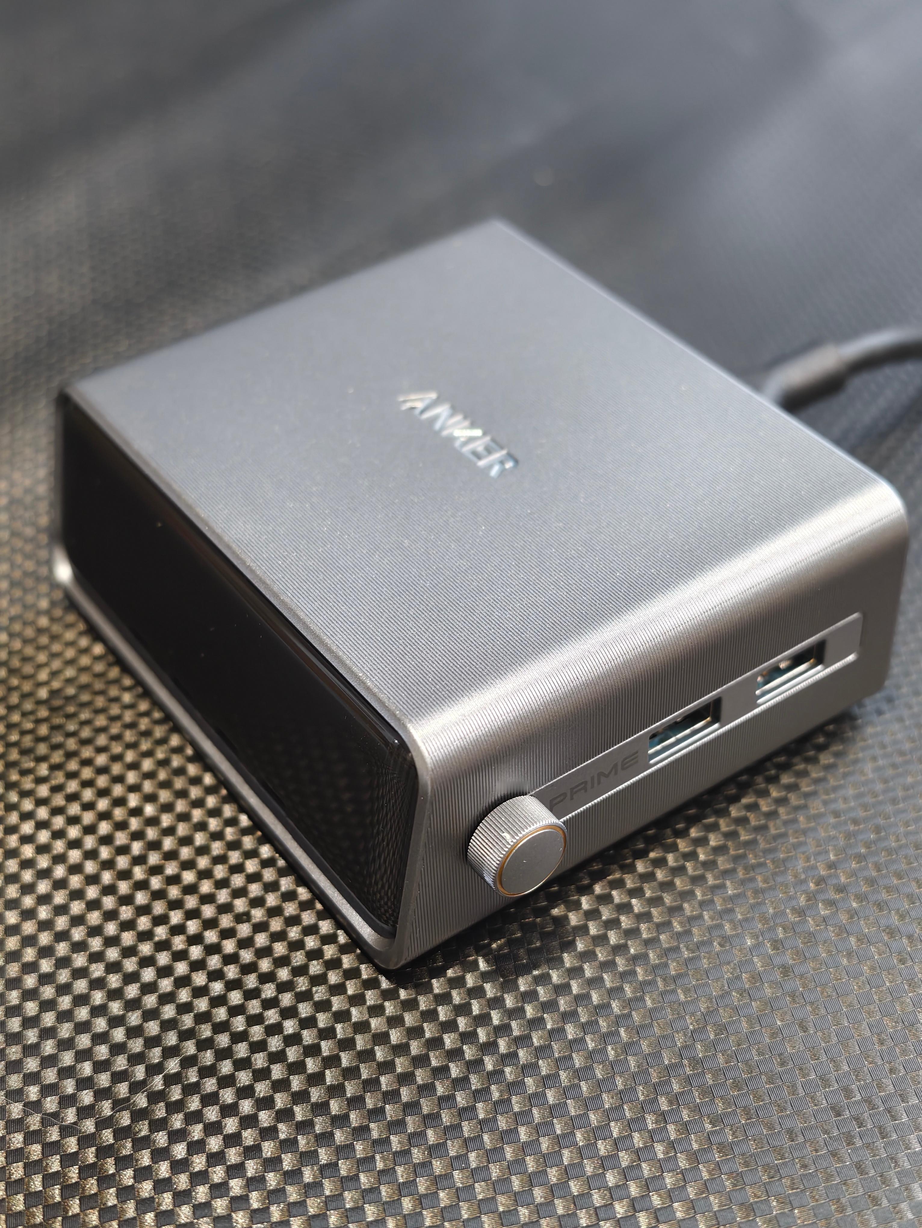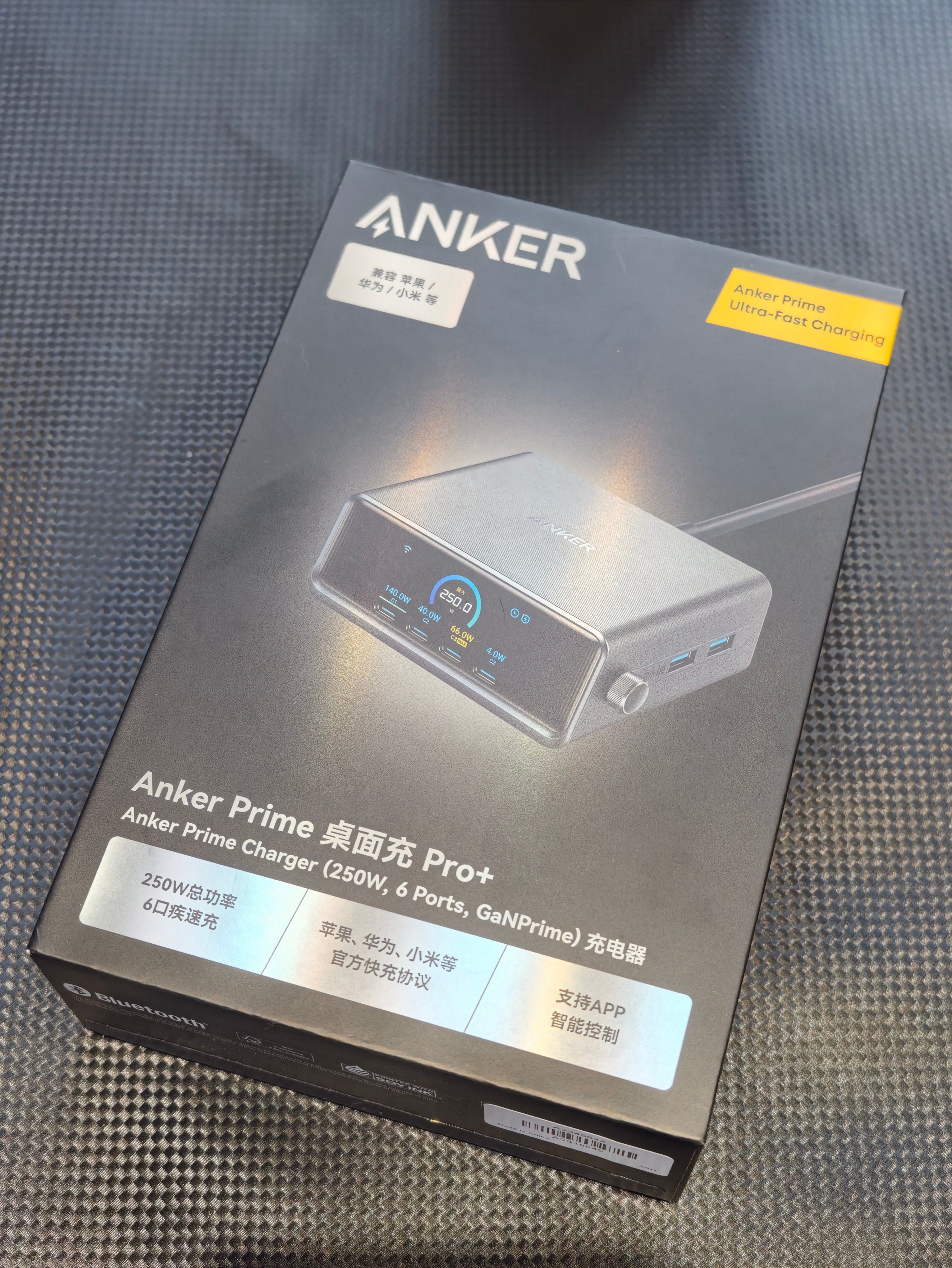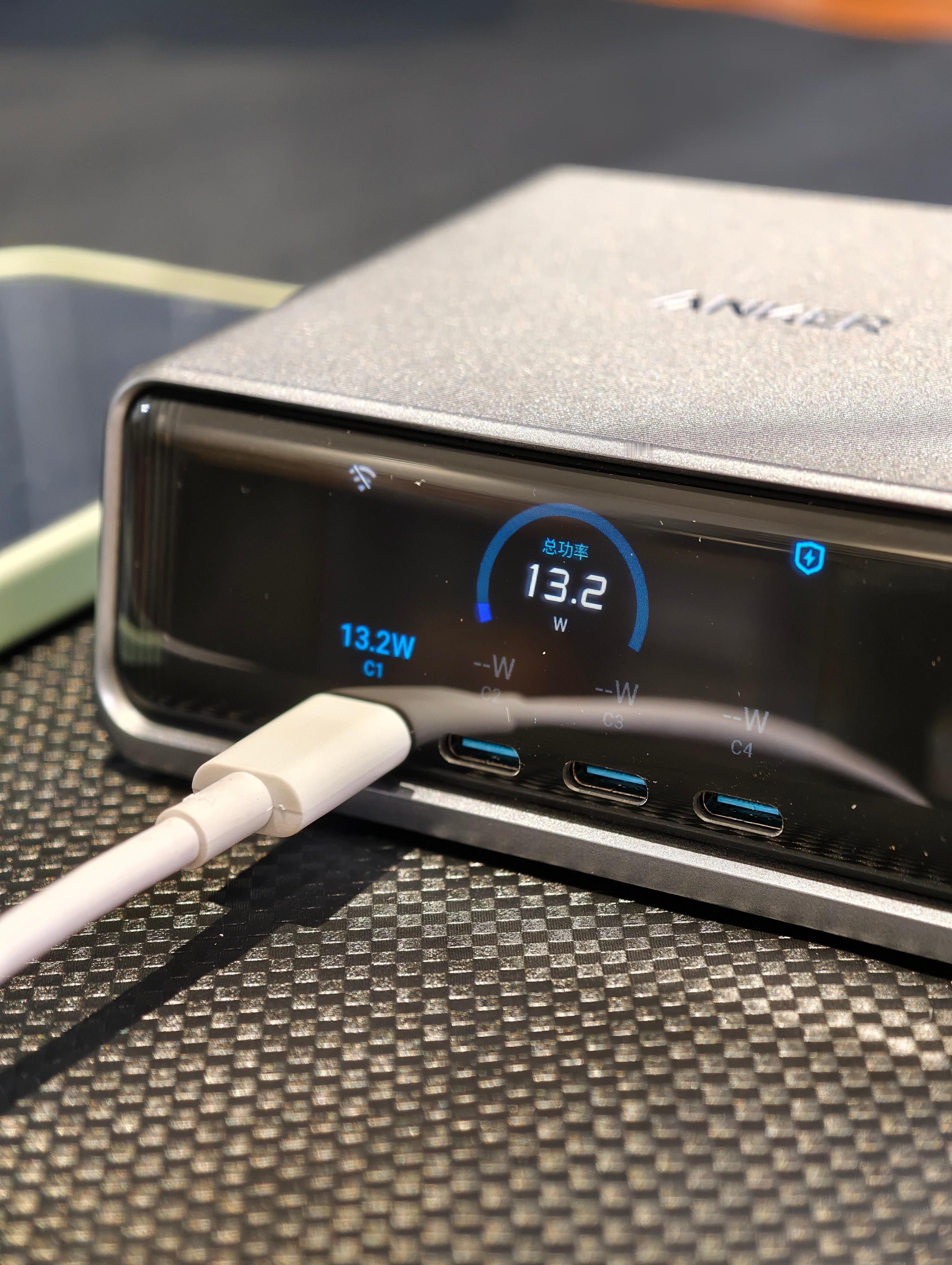 安克Prime桌面充Pro+,桌面整洁神器最近体验了安克Prime桌面充Pro+,直接把桌面充电体验拉满!硬核实力拉满:250W总功率,4C+2A六口全配置,一个就搞定笔记本、手机、平板、耳机等所有设备充电需求。C1口140W满功率喂饱16寸笔记本,其余C口各100W,A口22.5W给小设备补能,多设备同时充也不抢电。✅全协议:不仅支持PD3.1、PPS等通用协议,更拿下华为66W、小米120W私有快充授权,苹果、华为、小米用户都能无缝快充,原装头直接下岗!👀可视化超贴心:2.26英寸高清彩屏实时显示每口功率,谁在快充谁在慢用一目了然,深夜还能当桌面时钟,金属旋钮操作超顺手。🤖智能更省心:连APP可远程监控、自定义功率分配,支持OTA持续升级。