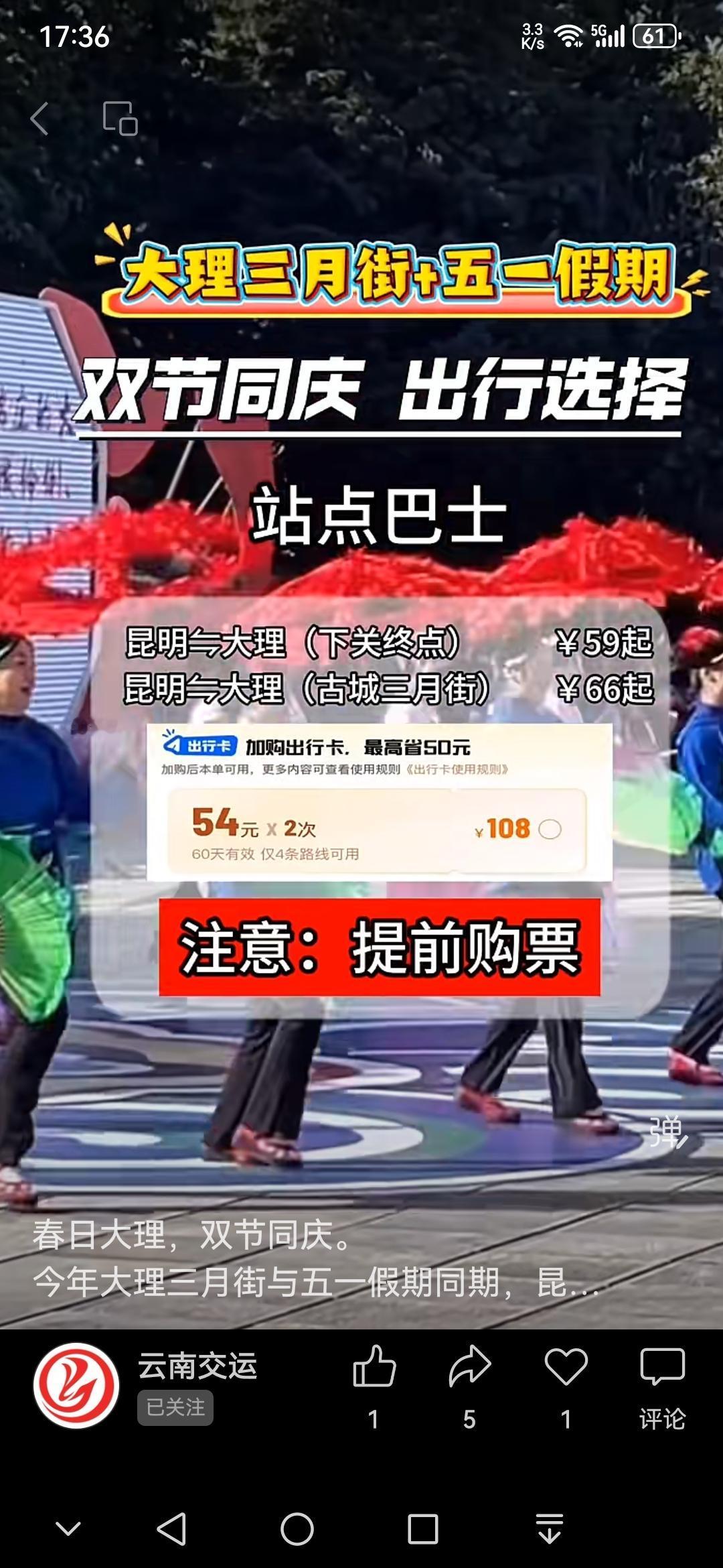 昆明→大理(下关终点)59元起