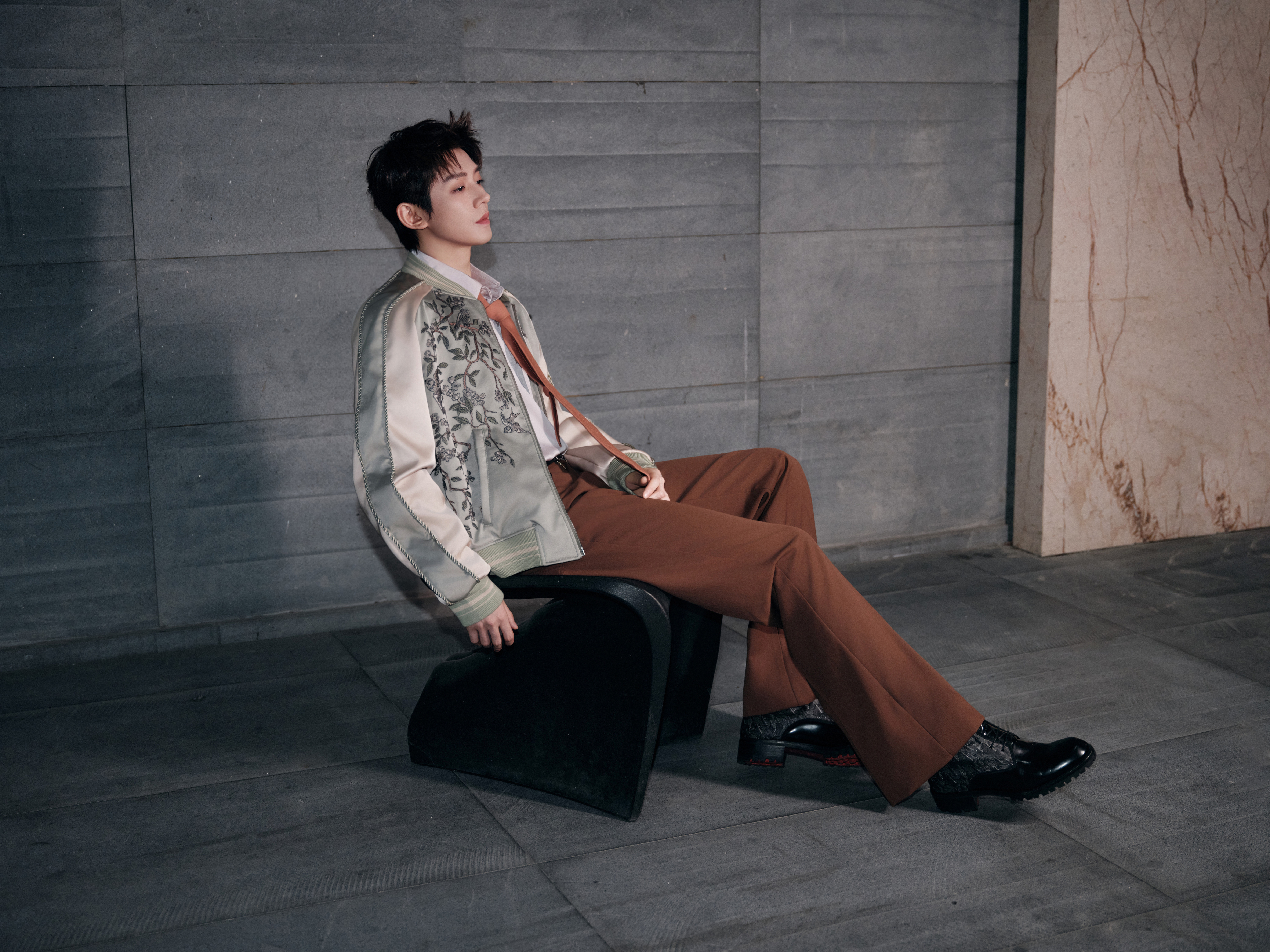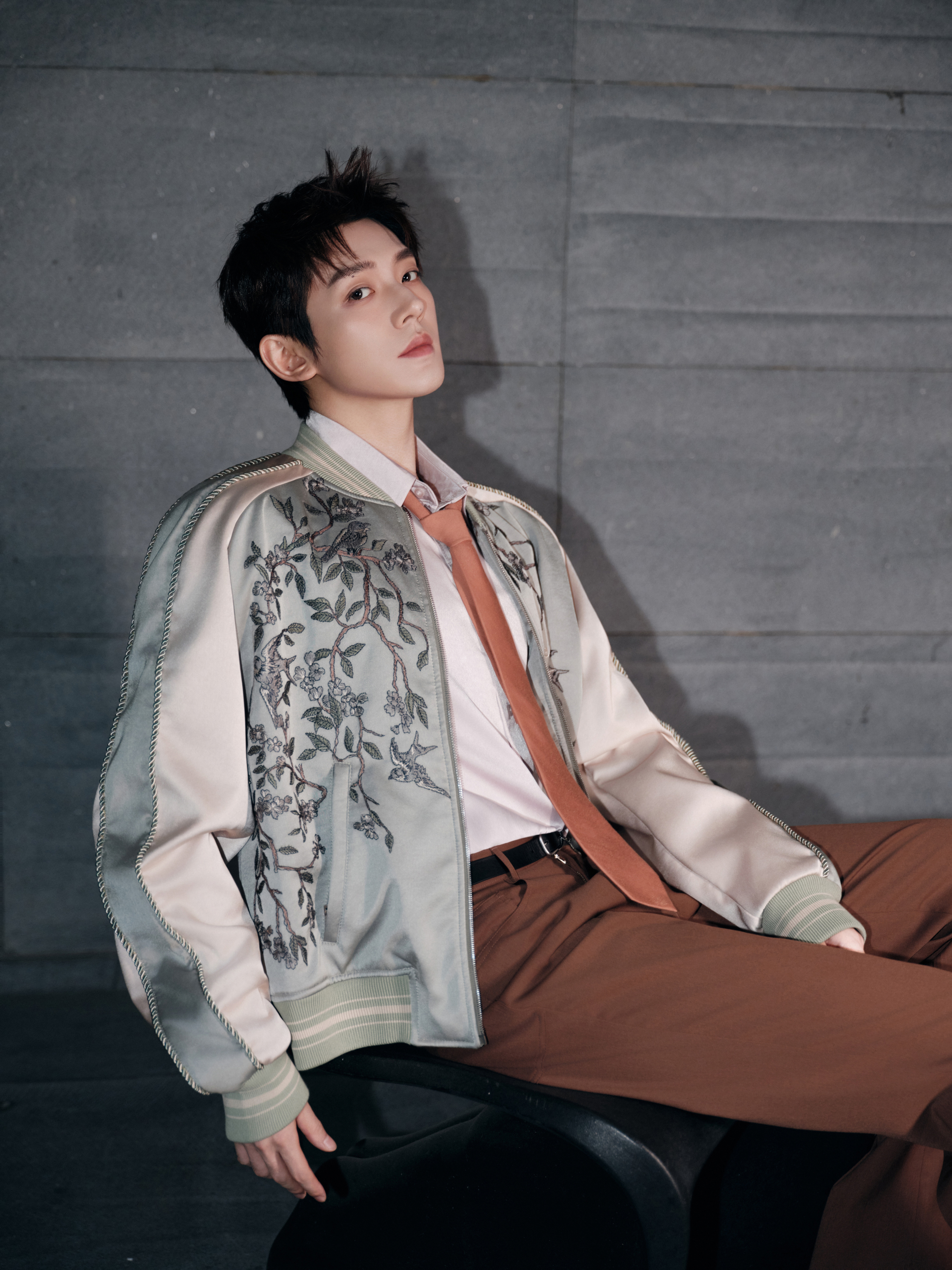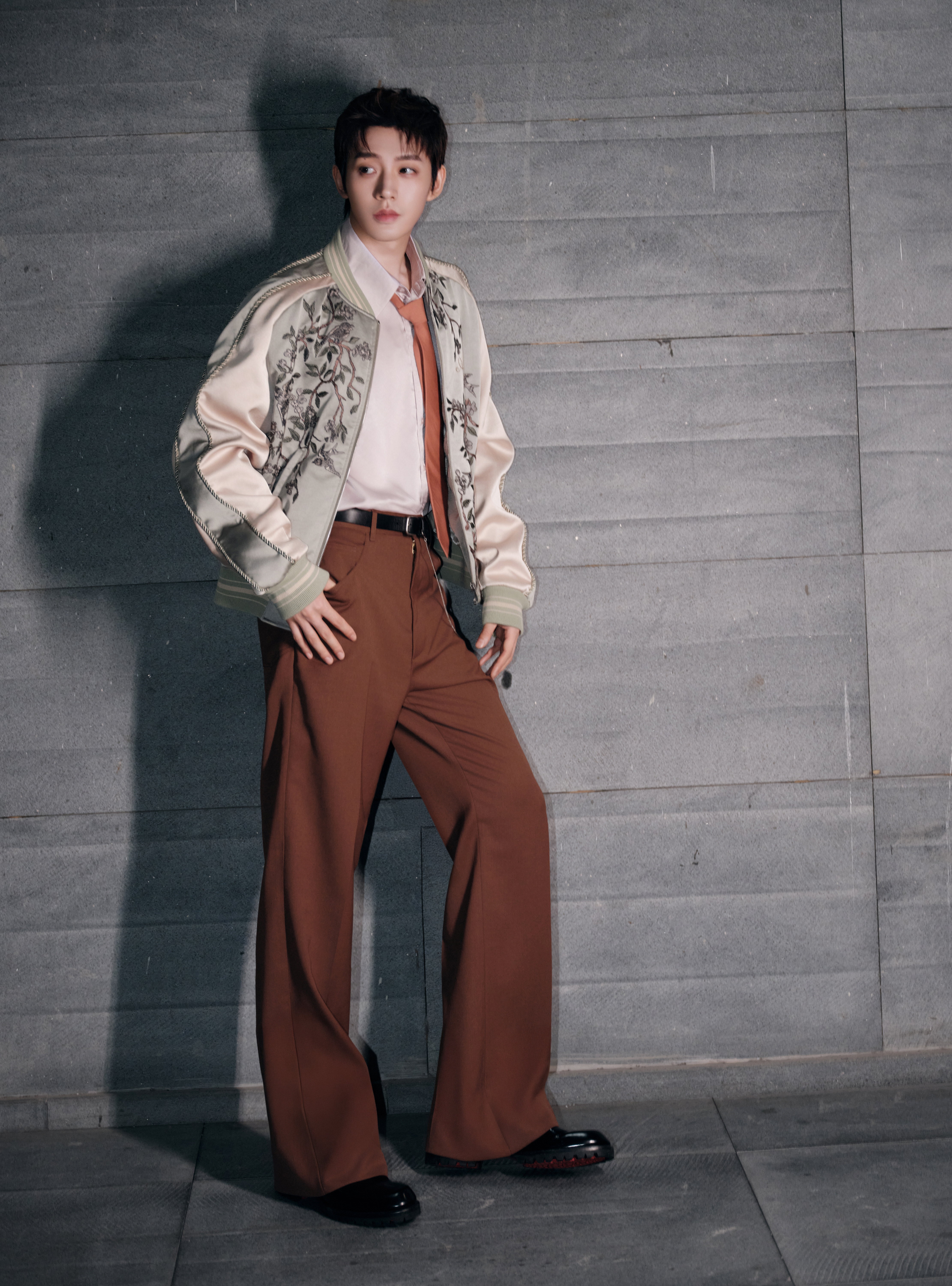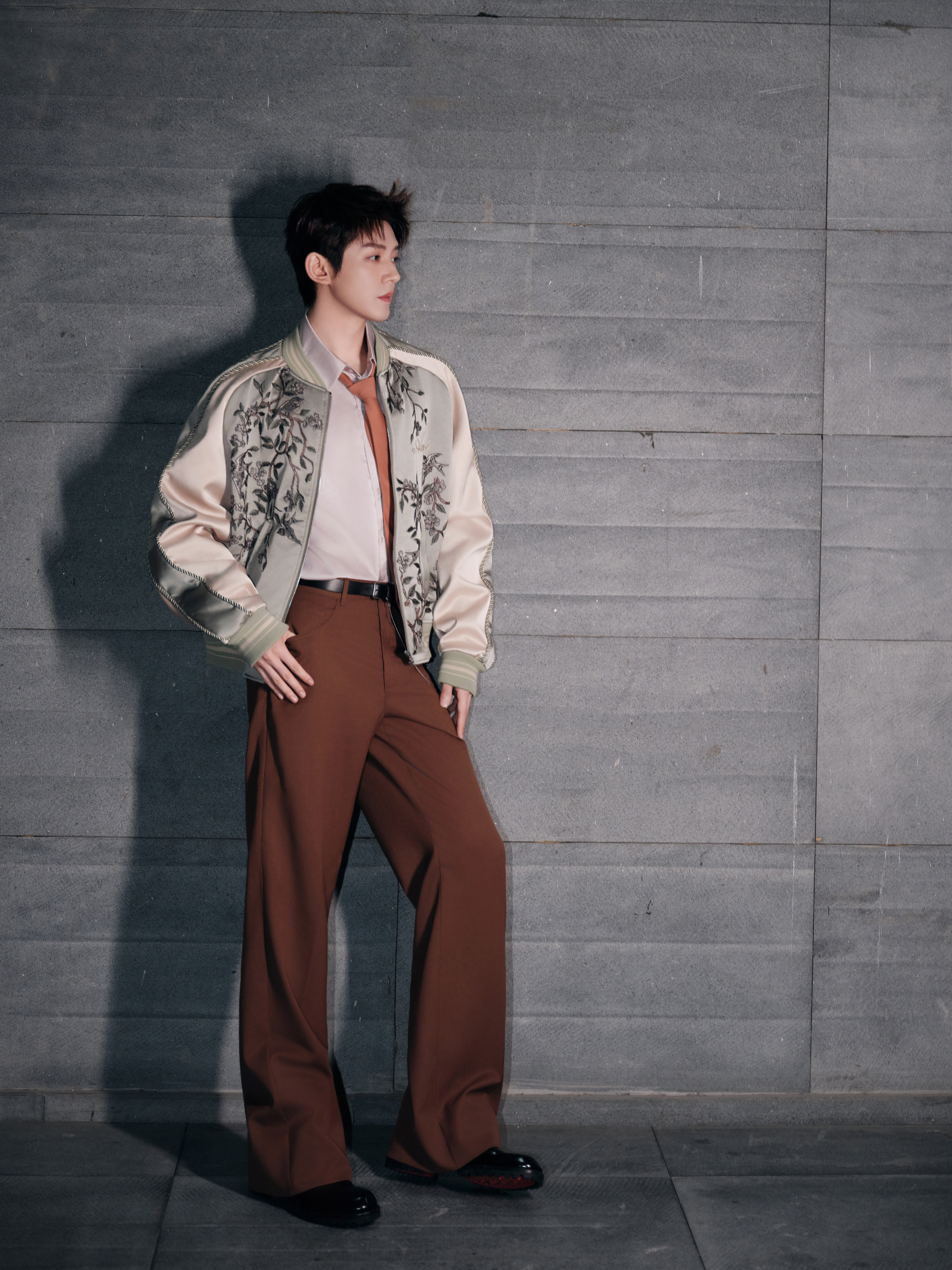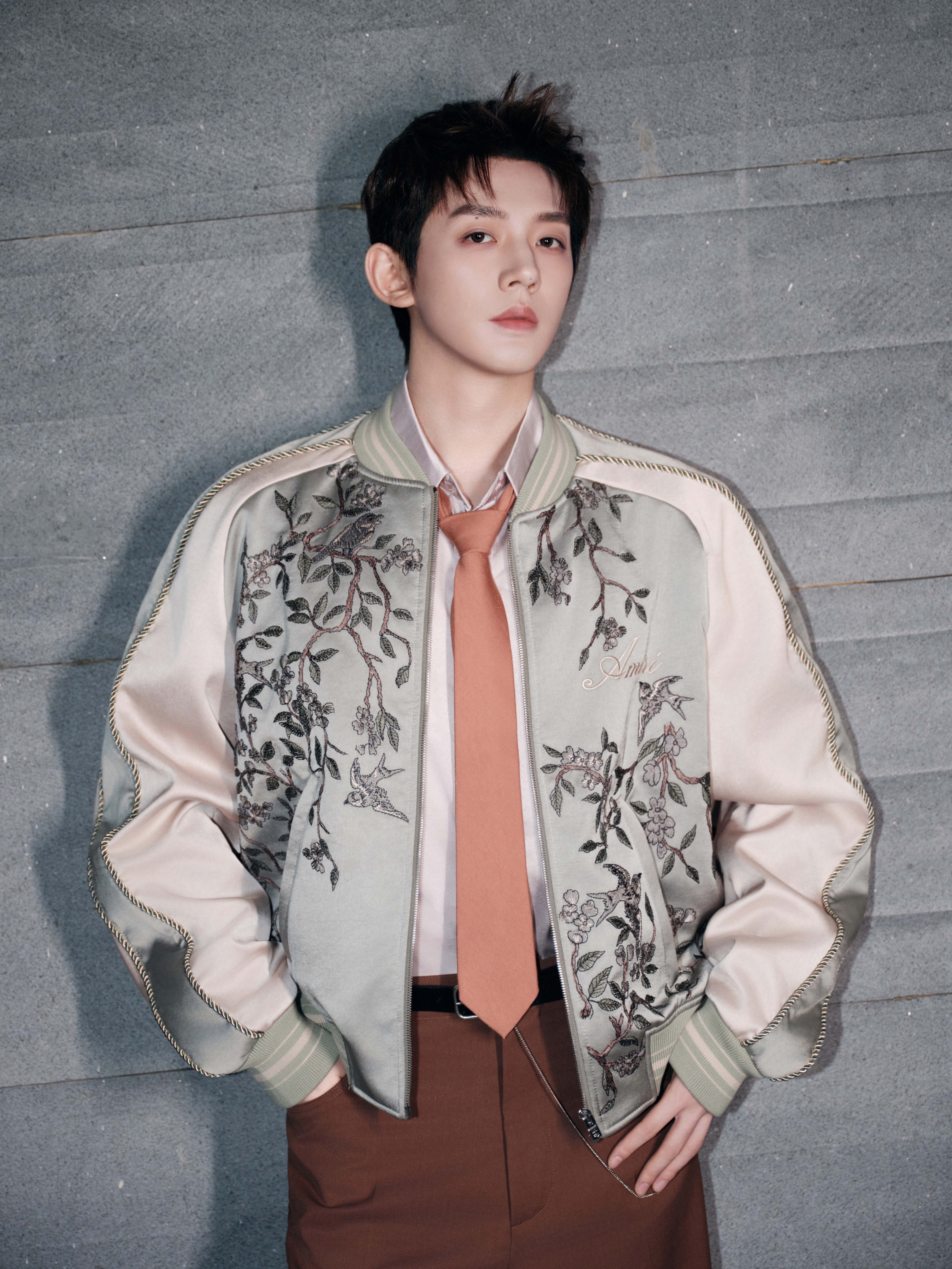 来自全新造型大片,身穿 Amiri 2026 春夏男装系列出镜,刺绣缎面夹克搭配深棕阔腿西装裤,慵懒随性的复古腔调,尽显优越身材比例,温柔又贵气的一套 Look 演绎~🤎