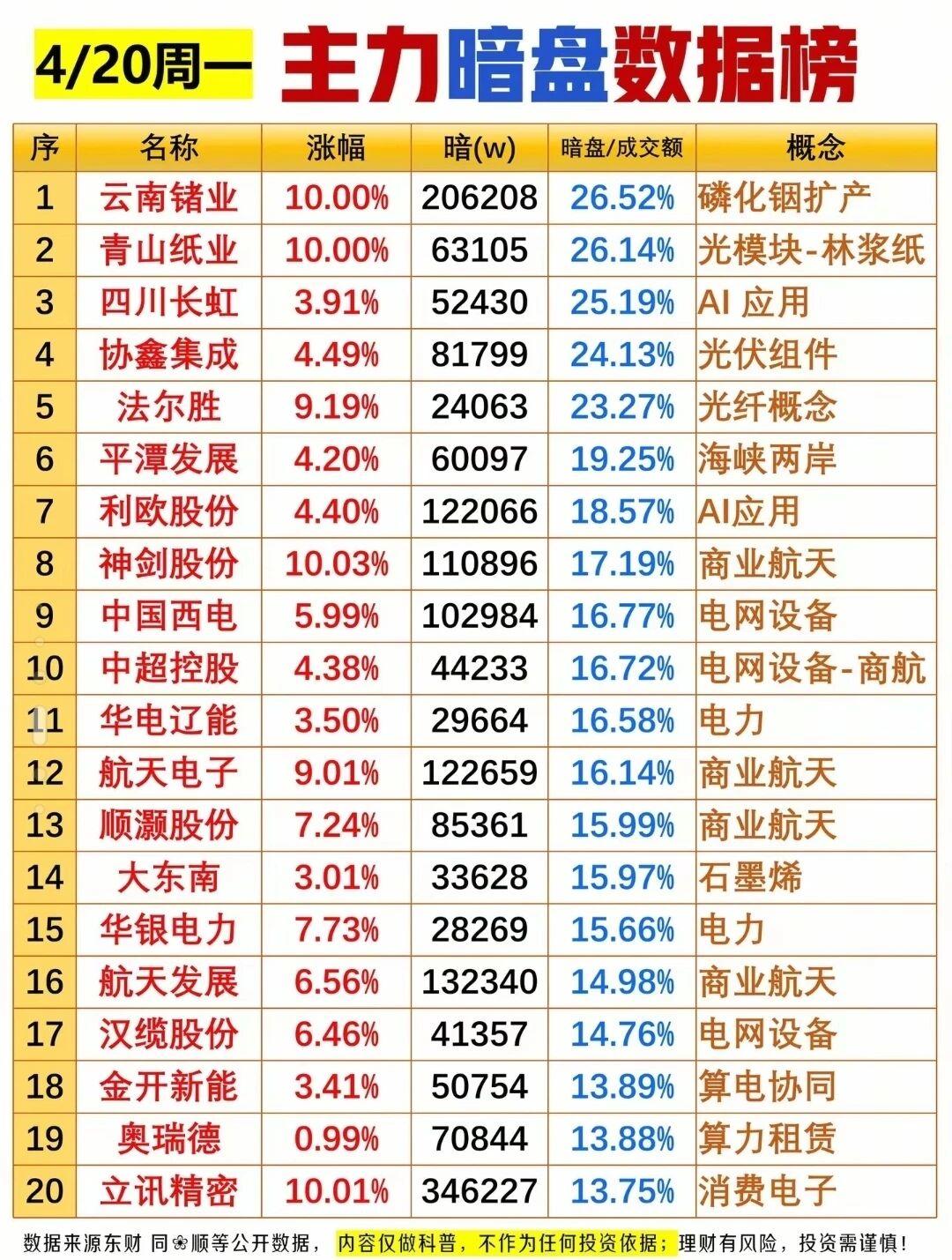 4.20周一复盘|航天军工与光模块双轮驱动,市场情绪回暖。