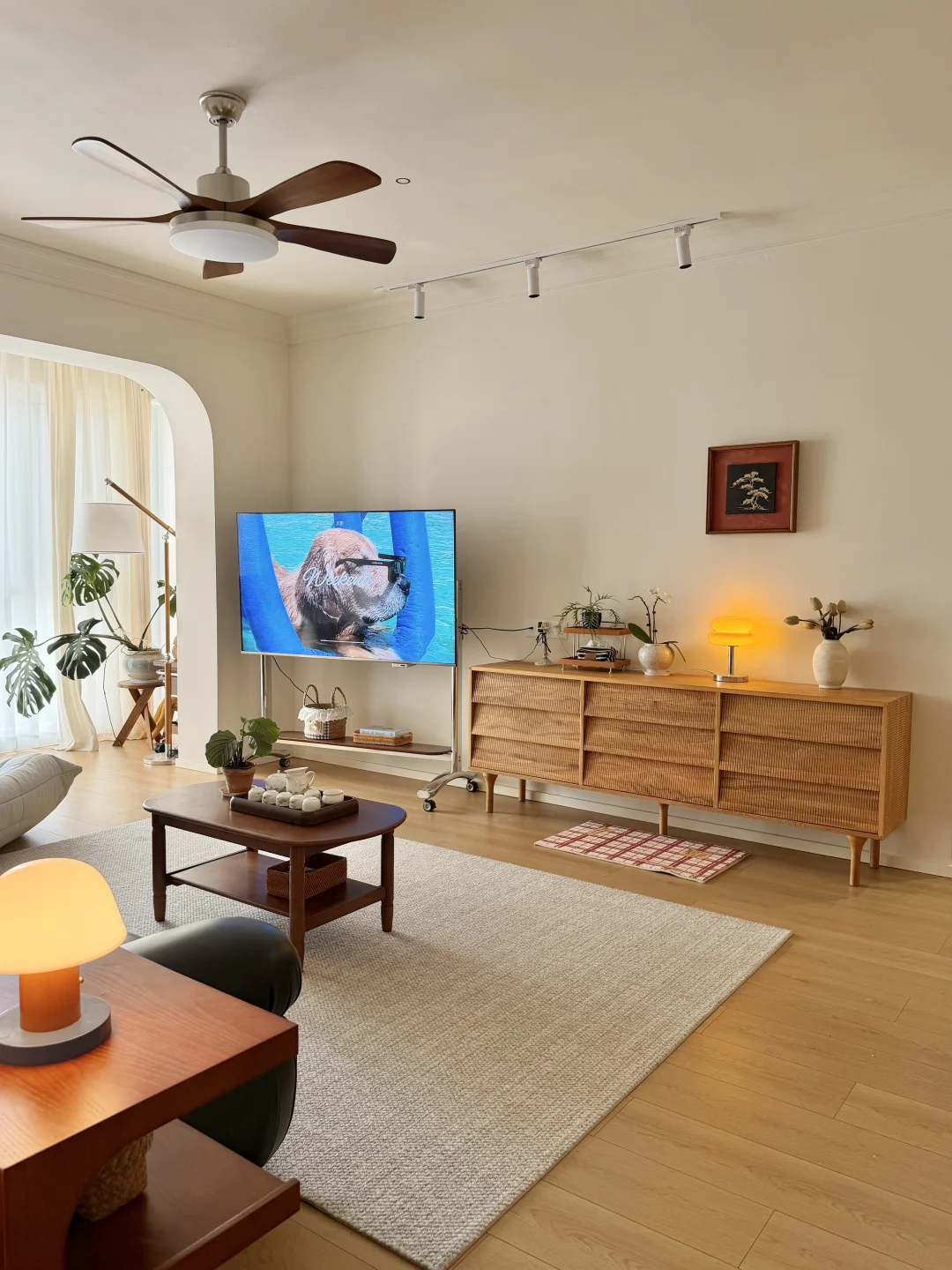 打开窗吹着自然风 看着电视吃些水果