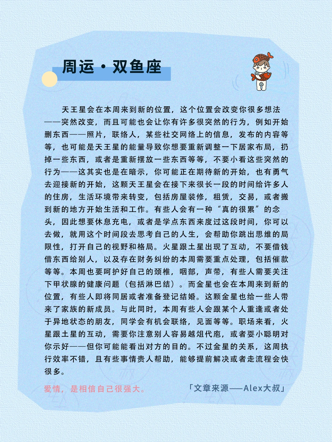 这周依旧很适合追星,因为天王星跟金星的能量,可能也会为了捍卫自己喜欢的人而想要保护他们,做一些保护他们的事情等等——但需要结合最后我说到的,这是不是你的滤镜效应?