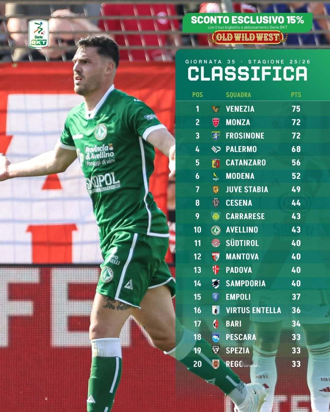 👉 由斯特罗帕🇮🇹教练执教的威尼斯队以22胜9平4负积75分,排名→第1位。ac米兰名宿