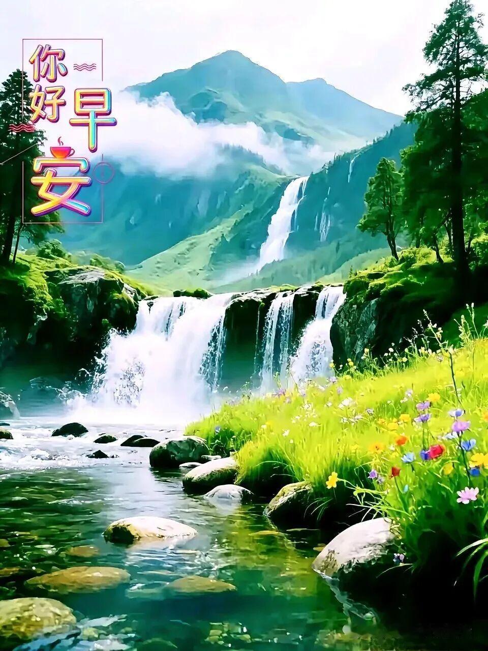 早安!💦碧水绕青山,🍃清风拂鬓边,愿您晨起有暖意☀️,岁岁皆安康🙏,平安伴