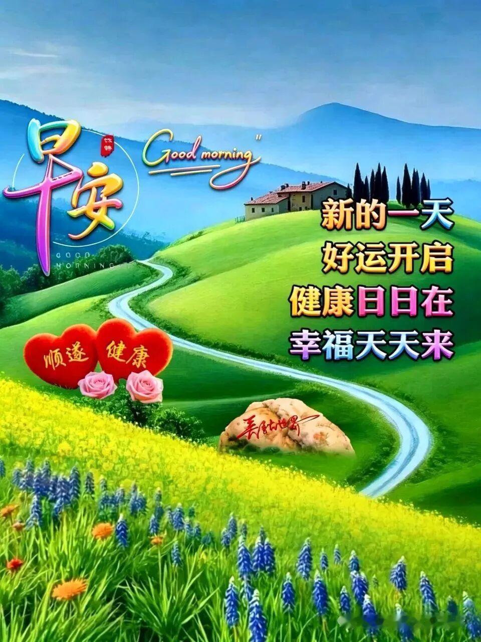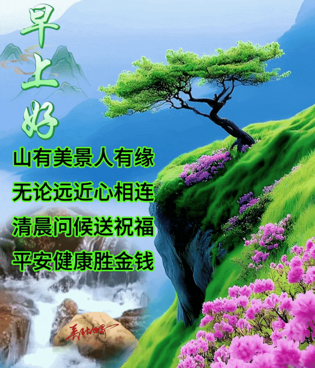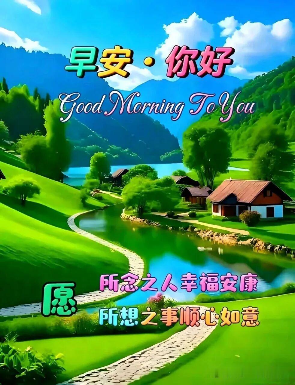 早安!💦碧水绕青山,🍃清风拂鬓边,愿您晨起有暖意☀️,岁岁皆安康🙏,平安伴一生❤️。🍒🌴🌱